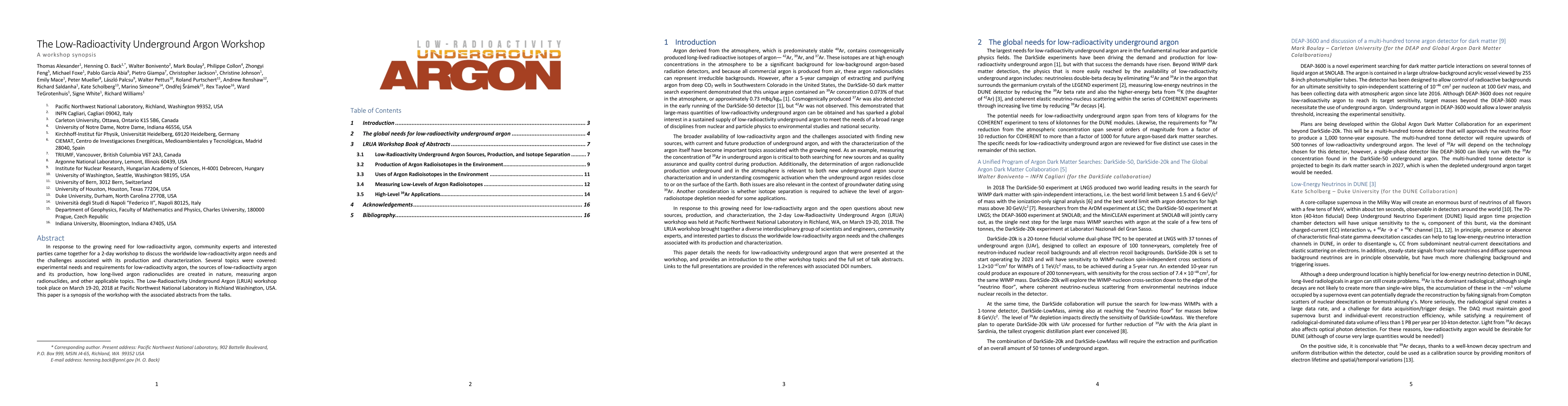 This paper summarizes a workshop held to address the global demand for low-radioactivity argon, focusing on production challenges, sources, and measurement techniques. The workshop, held in March 2018, included discussions on experimental needs, natural creation of long-lived argon radionuclides, and related topics.