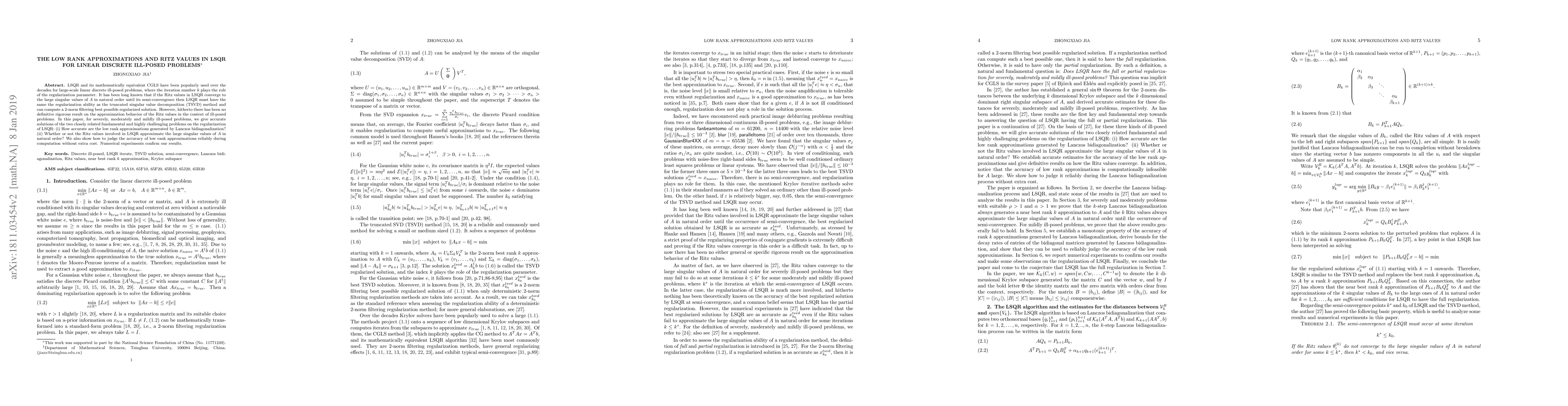 The paper presents a detailed analysis of LSQR's low-rank approximation accuracy and Ritz value approximation to large singular values, along with a method to reliably assess approximation accuracy without additional computational cost.