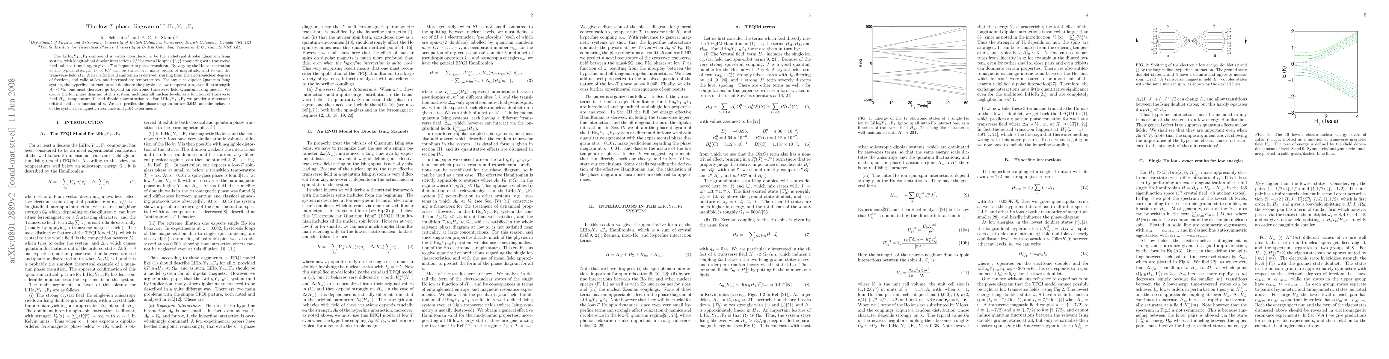This paper derives an effective Hamiltonian for the ${\rm LiHo_xY_{1-x}F_4}$ compound, identifying the low-temperature phase diagram dominated by hyperfine interactions. It predicts a re-entrant critical field and provides insights into the system's behavior under magnetic resonance and $\mu$SR experiments.