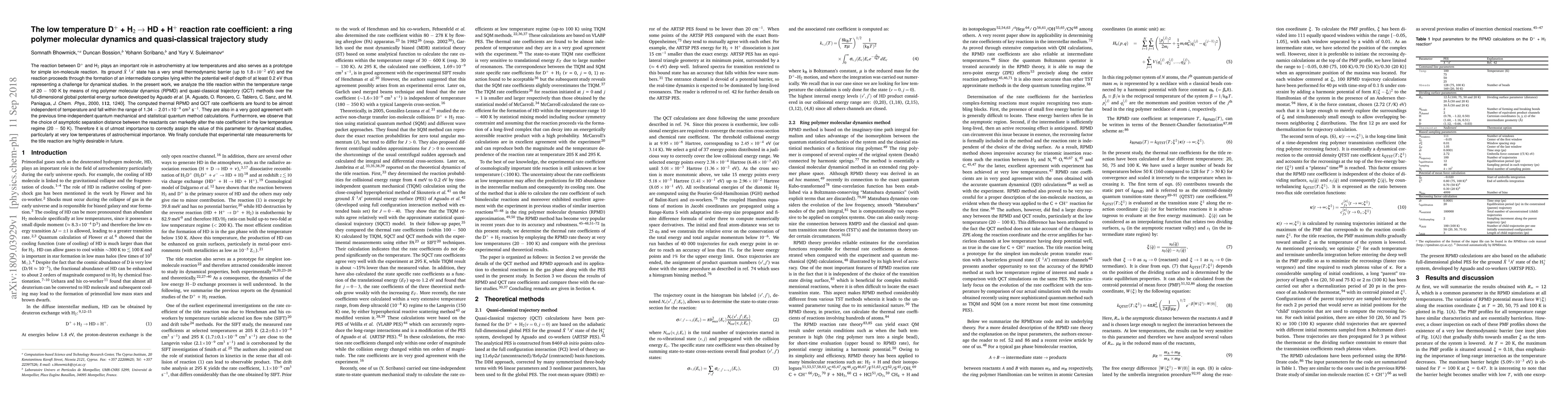 This study investigates the low-temperature reaction D$^+$ + H$_2$ $\rightarrow$ HD + H$^+$ using ring polymer molecular dynamics and quasi-classical trajectory methods. The computed rate coefficients are nearly temperature-independent and agree with previous quantum mechanical calculations, highlighting the importance of accurately defining the asymptotic separation distance for low-temperature dynamics.