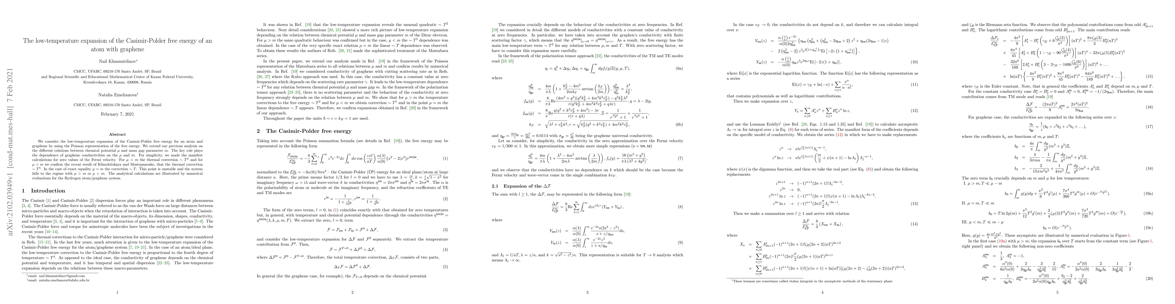 We consider the low-temperature expansion of the Casimir-Polder free energy