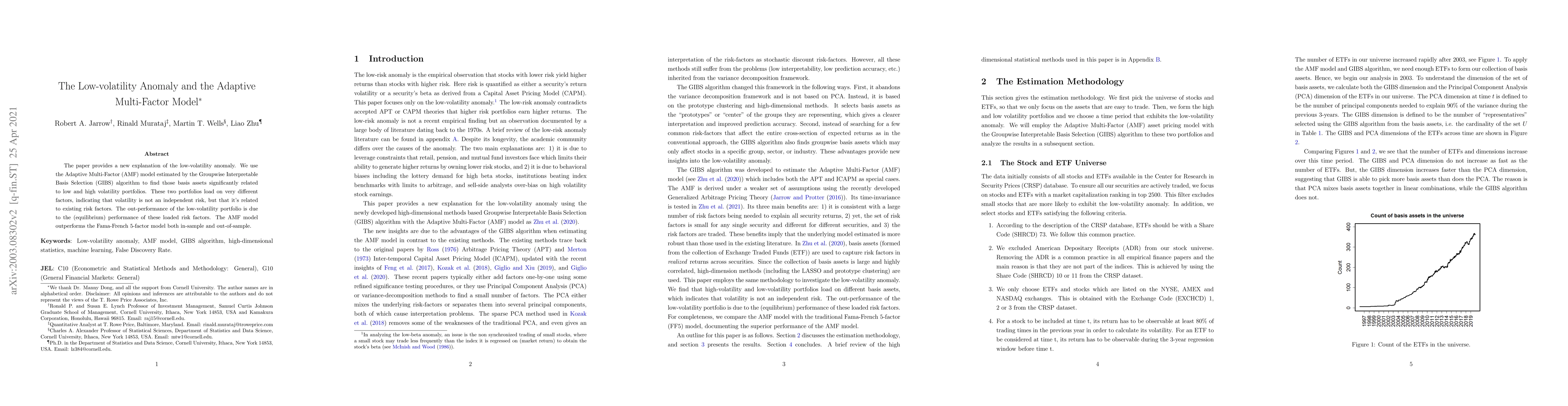 The paper provides a new explanation of the low-volatility anomaly. We use the Adaptive Multi-Factor (AMF) model estimated by the Groupwise Interpretable Basis Selection (GIBS) algorithm to find those basis assets significantly related to low and high volatility portfolios. These two portfolios load on very different factors, indicating that volatility is not an independent risk, but that it's related to existing risk factors. The out-performance of the low-volatility portfolio is due to the (equilibrium) performance of these loaded risk factors. The AMF model outperforms the Fama-French 5-factor model both in-sample and out-of-sample.