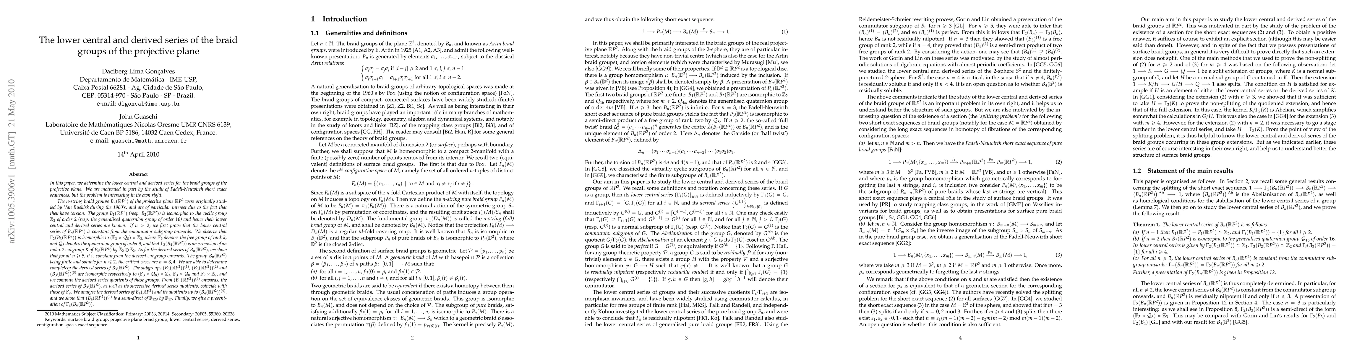 The research methodology involves determining the lower central and derived series of the braid groups of the projective plane, B_n(RP^2), for n ≥ 1. The study utilizes techniques from group theory, specifically focusing on braid groups and their algebraic properties, including Fadell-Neuwirth short exact sequences.