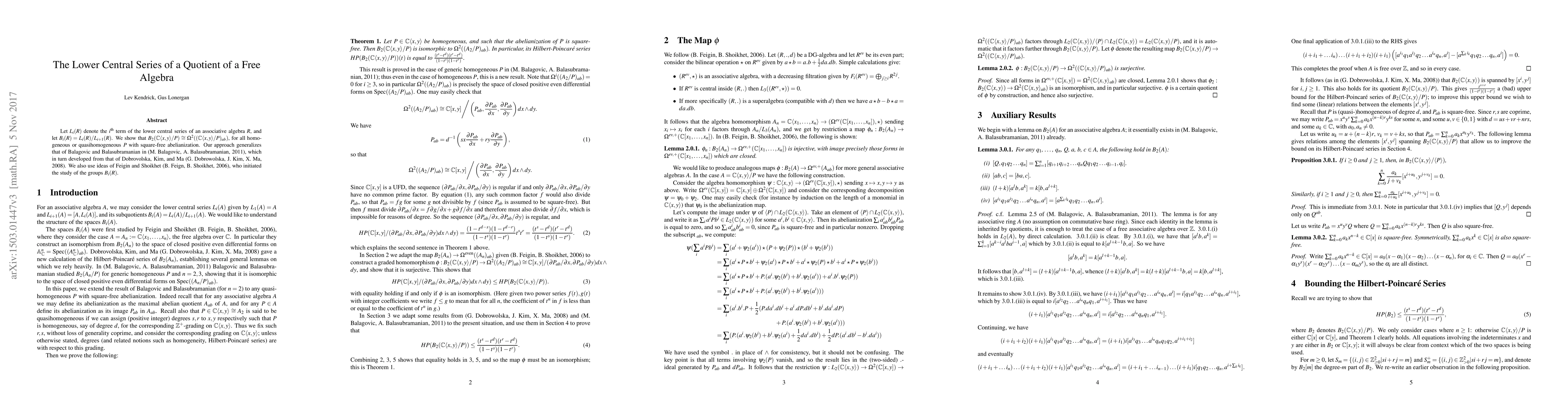 This paper investigates the lower central series of quotients of a free algebra, proving that $B_2(\mathbb{C}<x, y>/ P)\cong \Omega^2((\mathbb{C}<x, y>/ P)_{ab})$ for certain polynomial ideals $P$. The methodology builds on prior work by Balagovic, Balasubramanian, Dobrovolska, Kim, Ma, Feign, and Shoikhet.