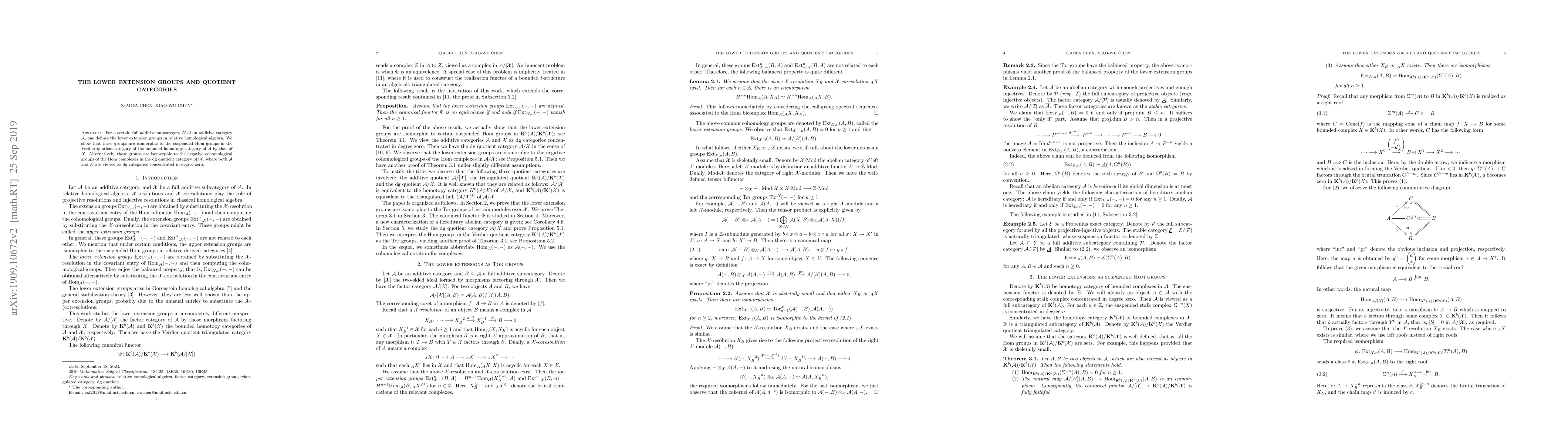 For a certain full additive subcategory X of an additive category A, one defines the lower extension groups in relative homological algebra. We show that these groups are isomorphic to the suspended Hom groups in the Verdier quotient category of the bounded homotopy category of A by that of X. Alternatively, these groups are isomorphic to the negative cohomological groups of the Hom complexes in the dg quotient category A/X, where both A and X are viewed as dg categories concentrated in degree zero.