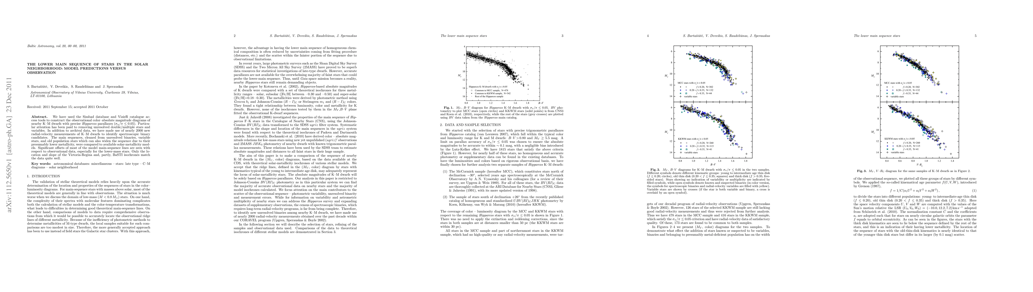 We have used the Simbad database and VizieR catalogue access tools to construct the observational color-absolute magnitude diagrams of nearby K-M dwarfs with precise Hipparcos parallaxes (\sigma_\pi/\pi < 0.05). Particular attention has been paid to removing unresolved double/multiple and variable stars. In addition to archival data, we have made use of nearly 2000 new radial-velocity measurements of K-M dwarfs to identify spectroscopic binary candidates. The main sequences, cleaned from unresolved binaries, variable stars, and old population stars which can also widen the sequence due to their presumably lower metallicity, were compared to available solar-metallicity models. Significant ofsets of most of the model main-sequence lines are seen with respect to observational data, especially for the lower-mass stars. Only the location and slope of the Victoria-Regina and, partly, BaSTI isochrones match the data quite well.