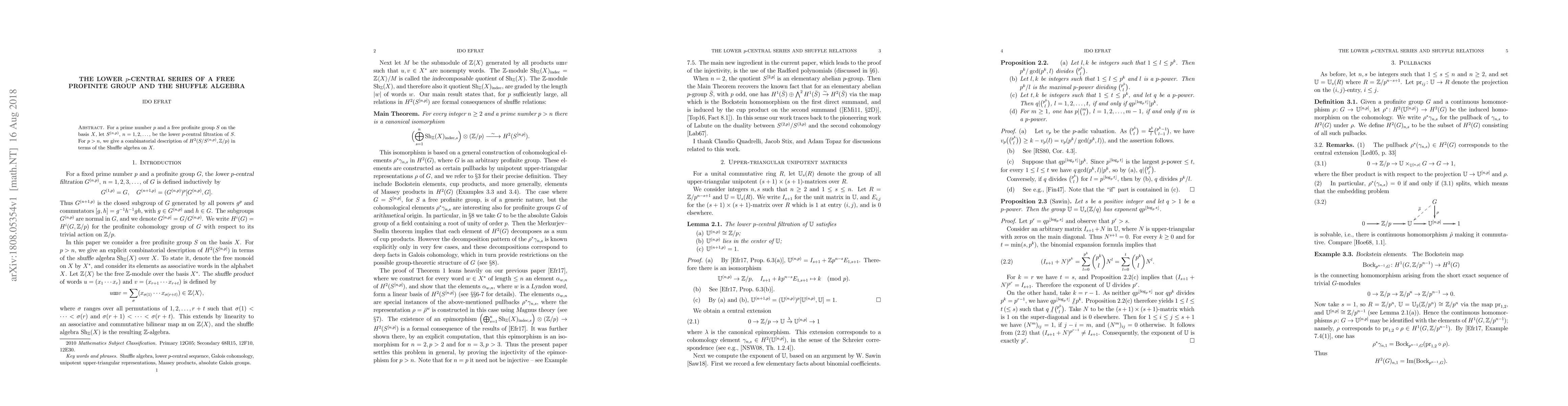 For a prime number $p$ and a free profinite group $S$ on the basis $X$, let $S^{(n,p)}$, $n=1,2,\ldots$ be the lower $p$-central filtration of $S$. For $p>n$, we give a combinatorial description of $H^2(S/S^{(n,p)},\mathbb{Z}/p)$ in terms of the Shuffle algebra on $X$.