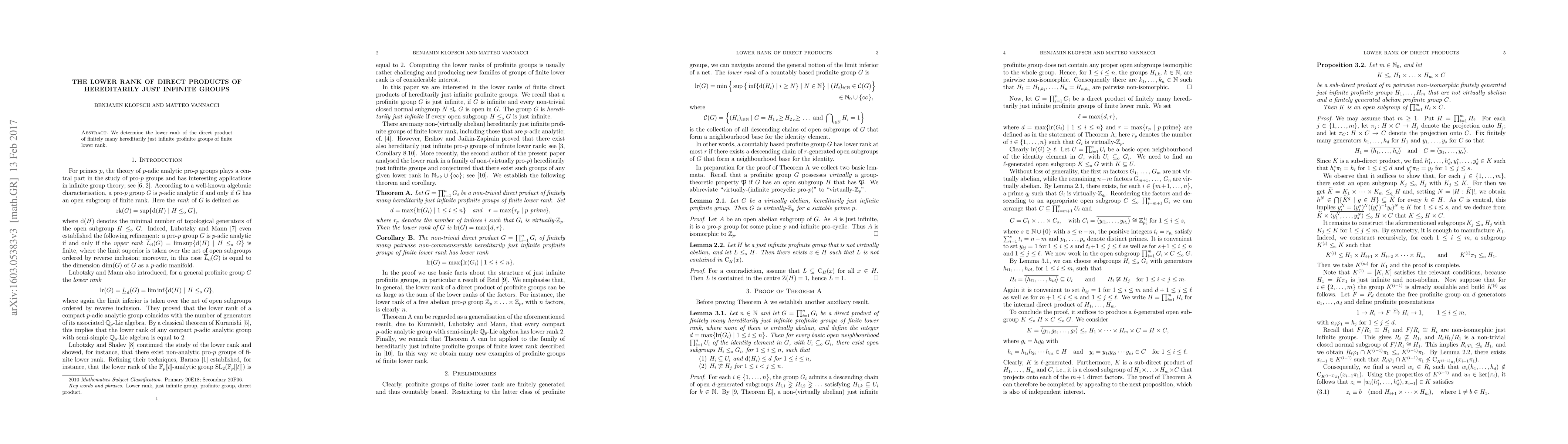 Summary: The paper investigates the lower rank of direct products formed by finitely many hereditarily just infinite profinite groups, confirming that their direct product retains a finite lower rank property.
