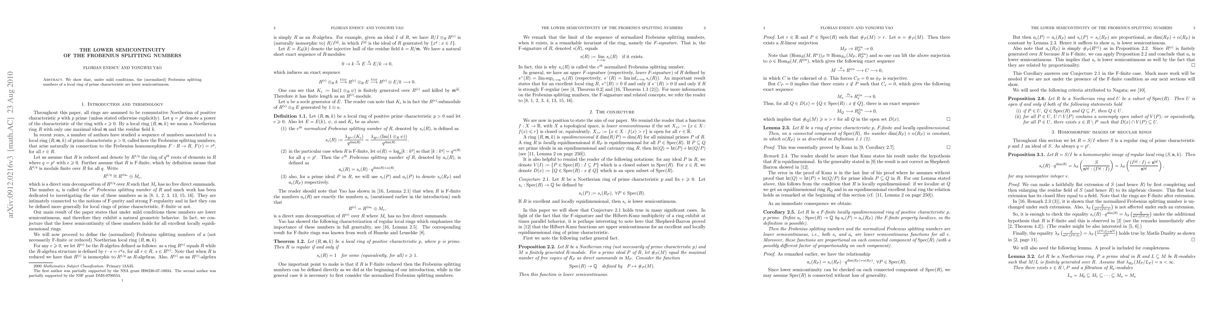 We show that, under mild conditions, the (normalized) Frobenius splitting numbers of a local ring of prime characteristic are lower semicontinuous.