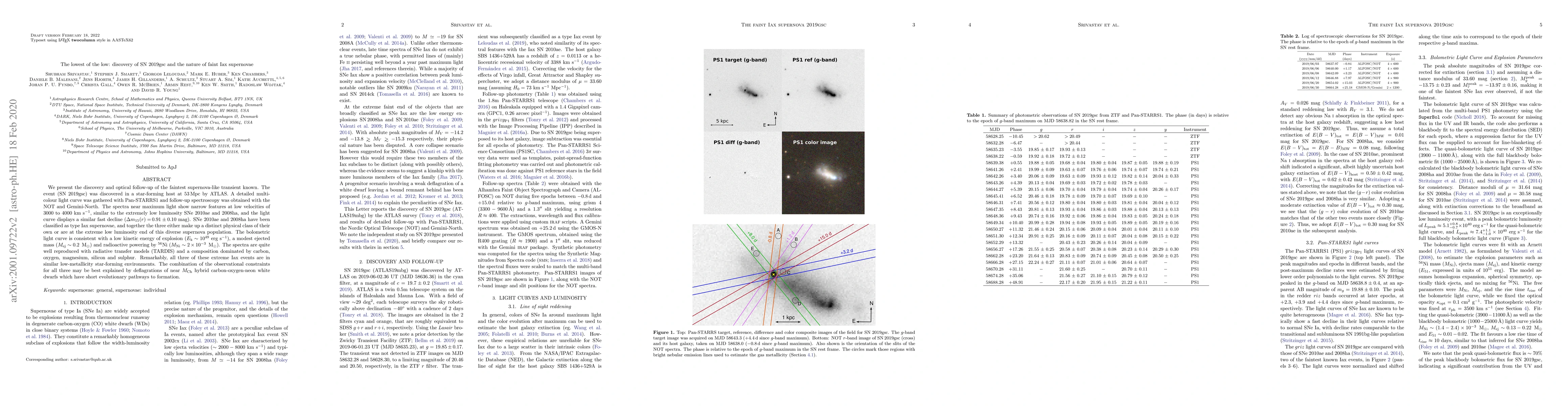 We present the discovery and optical follow-up of the faintest supernova-like transient known. The event (SN 2019gsc) was discovered in a star-forming host at 53\,Mpc by ATLAS. A detailed multi-colour light curve was gathered with Pan-STARRS1 and follow-up spectroscopy was obtained with the NOT and Gemini-North. The spectra near maximum light show narrow features at low velocities of 3000 to 4000 km s$^{-1}$, similar to the extremely low luminosity SNe 2010ae and 2008ha, and the light curve displays a similar fast decline (\dmr $0.91 \pm 0.10$ mag). SNe 2010ae and 2008ha have been classified as type Iax supernovae, and together the three either make up a distinct physical class of their own or are at the extreme low luminosity end of this diverse supernova population. The bolometric light curve is consistent with a low kinetic energy of explosion ($E_{\rm k} \sim 10^{49}$ erg s$^{-1}$), a modest ejected mass ($M_{\rm ej} \sim 0.2$ \msol) and radioactive powering by $^{56}$Ni ($M_{\rm Ni} \sim 2 \times 10^{-3}$ \msol). The spectra are quite well reproduced with radiative transfer models (TARDIS) and a composition dominated by carbon, oxygen, magnesium, silicon and sulphur. Remarkably, all three of these extreme Iax events are in similar low-metallicity star-forming environments. The combination of the observational constraints for all three may be best explained by deflagrations of near $M_{\rm Ch}$ hybrid carbon-oxygen-neon white dwarfs which have short evolutionary pathways to formation.