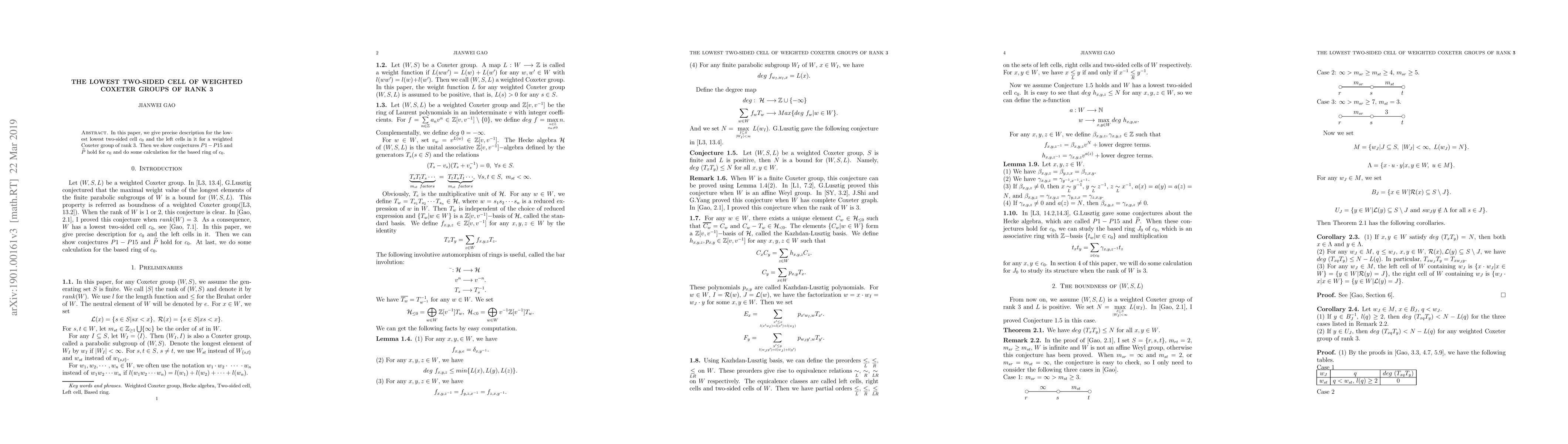 This paper provides a detailed description of the lowest two-sided cell \( c_{0} \) and its left cells in a weighted Coxeter group of rank 3, and verifies conjectures P1-P15 and \(\widetilde{P}\) for \( c_{0} \). Additionally, it calculates the based ring of \( c_{0} \).