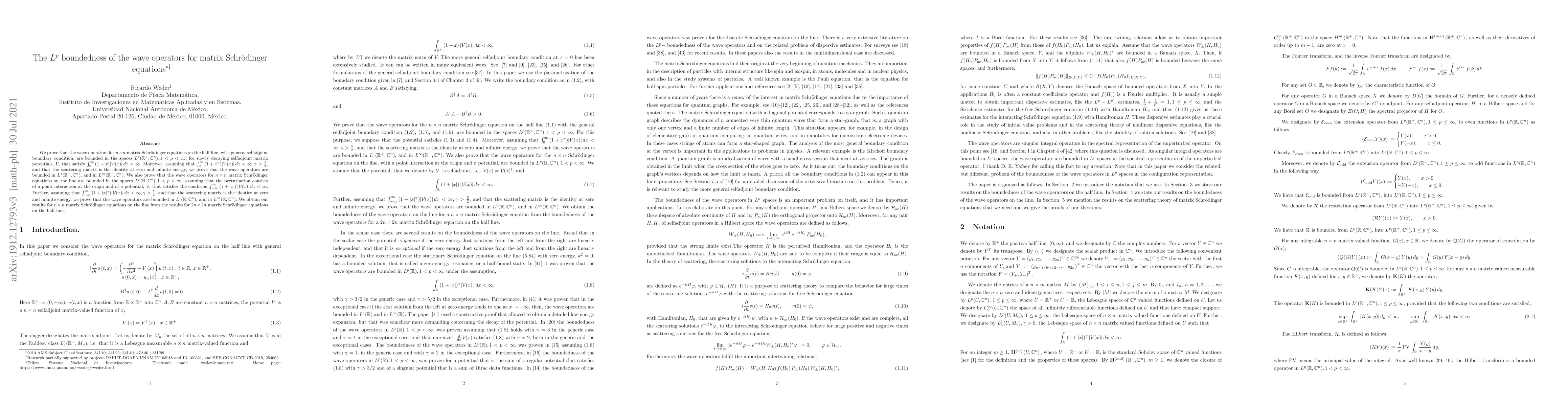 This paper proves $L^p$ boundedness of wave operators for matrix Schrödinger equations on both half-line and full line, under specific conditions on selfadjoint matrix potentials. It establishes boundedness in $L^1$ and $L^\infty$ spaces under additional decay conditions and identity scattering matrix.