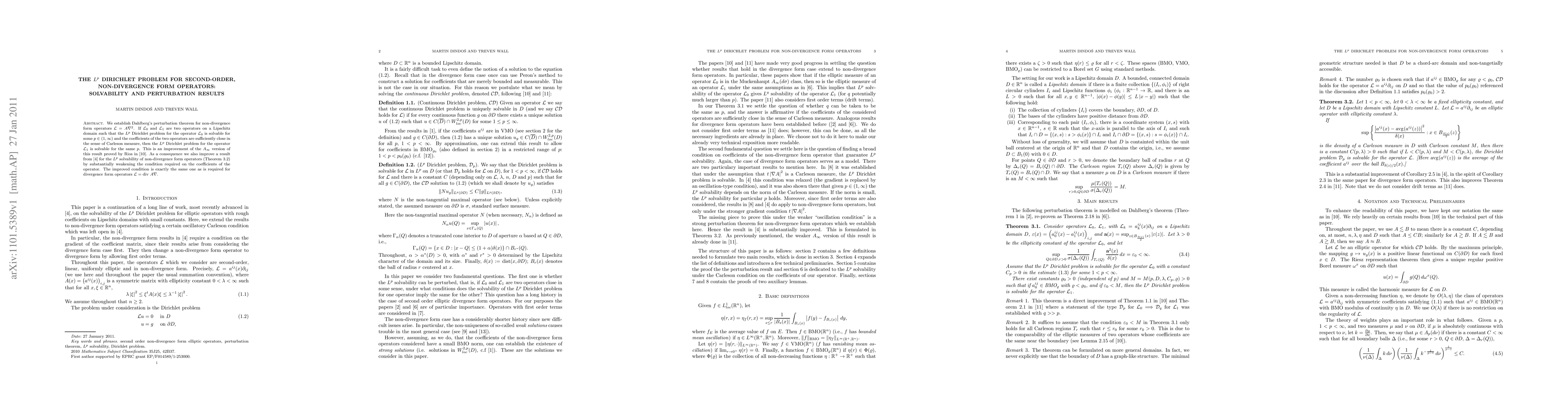The paper presents a refined perturbation theorem for the L^p Dirichlet problem of non-divergence form operators, providing a more relaxed condition on the coefficients.