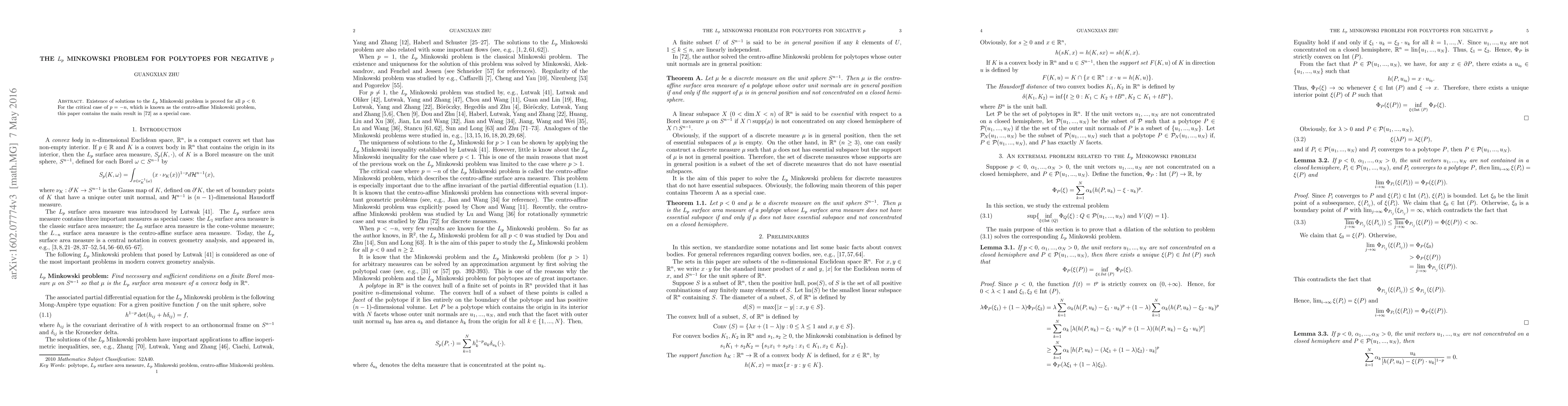 This paper proves the existence of solutions to the Lp Minkowski problem for all p less than 0, including the critical case of p=-n, which is the centro-affine Minkowski problem, a special case previously established in [71].
