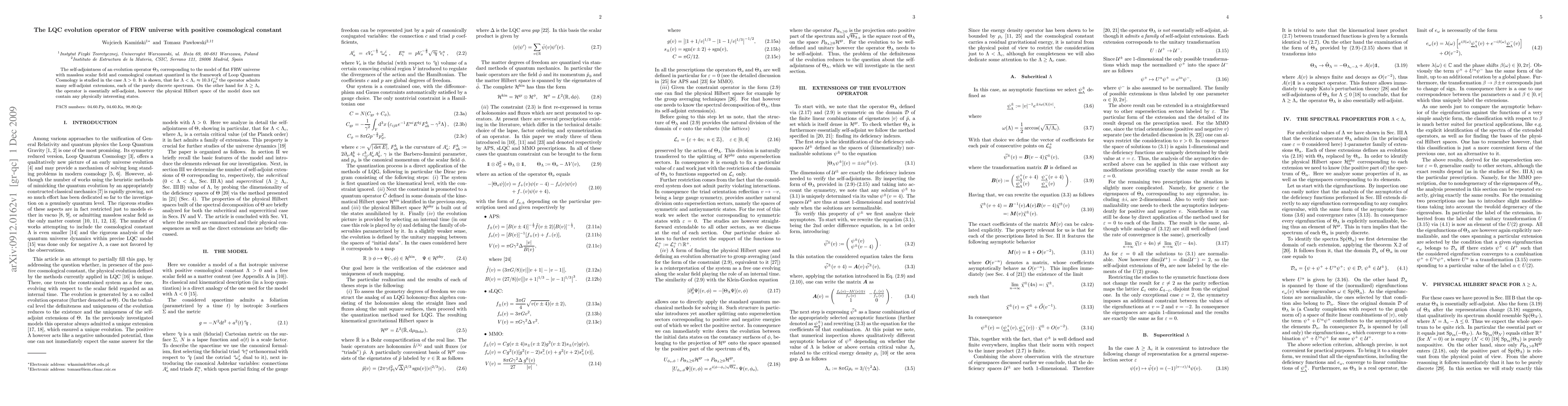 Researchers investigate the evolution operator in Loop Quantum Cosmology for a flat FRW universe with a positive cosmological constant, finding that it has multiple self-adjoint extensions below a critical value of the constant, but becomes essentially self-adjoint above this threshold with no physically interesting states.