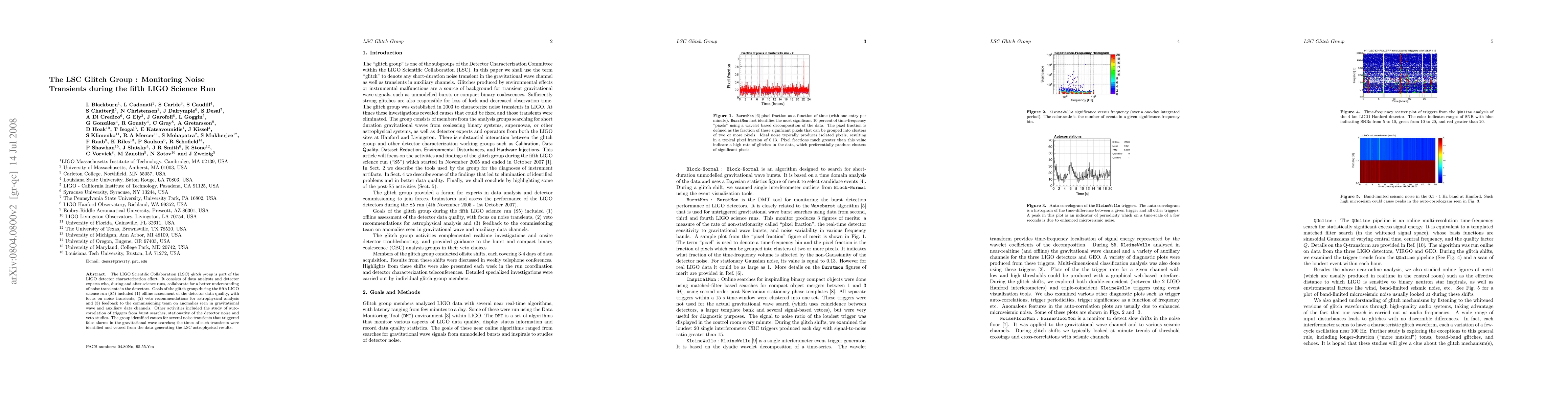The LSC Glitch Group monitored noise transients during the fifth LIGO science run (S5), focusing on data quality, veto recommendations, and feedback on anomalies. They identified and vetoed transients causing false alarms to improve astrophysical analysis.