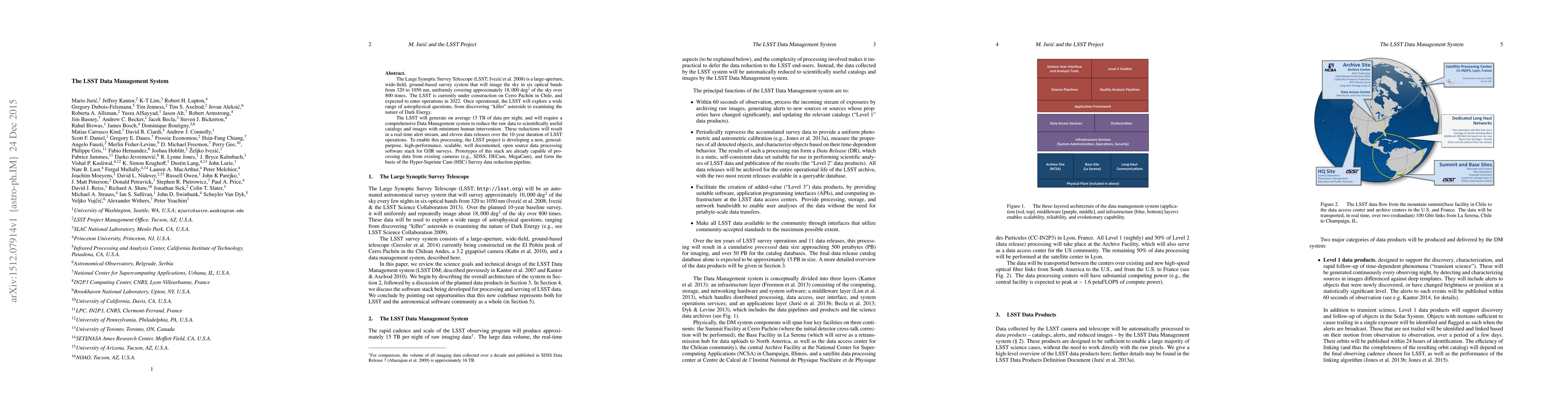The LSST Data Management System is designed to handle the vast amount of data generated nightly by the Large Synoptic Survey Telescope, aiming to process it into scientifically useful catalogs and images with minimal human intervention. The system will produce real-time alerts and eleven data releases over the LSST's 10-year operational period, utilizing a new, scalable, open-source data processing software stack.