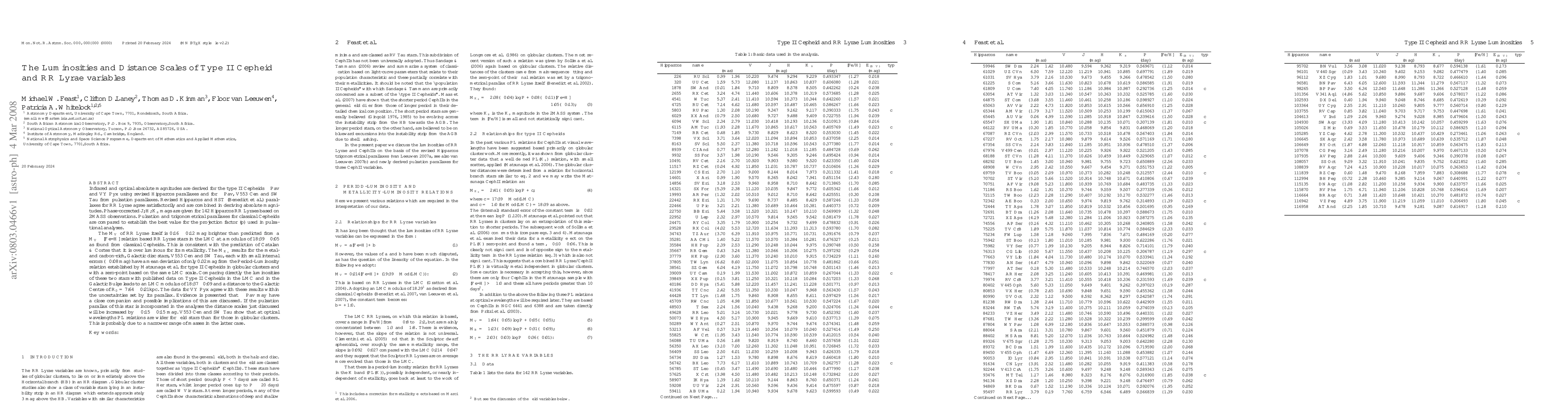 This paper derives infrared and optical absolute magnitudes for type II Cepheids and RR Lyrae variables, using revised Hipparcos and 2MASS data. It finds an LMC modulus of 18.37±0.09 and a distance to the Galactic Centre of 7.64±0.21 kpc, suggesting that field type II Cepheids have wider PL relations compared to those in globular clusters.