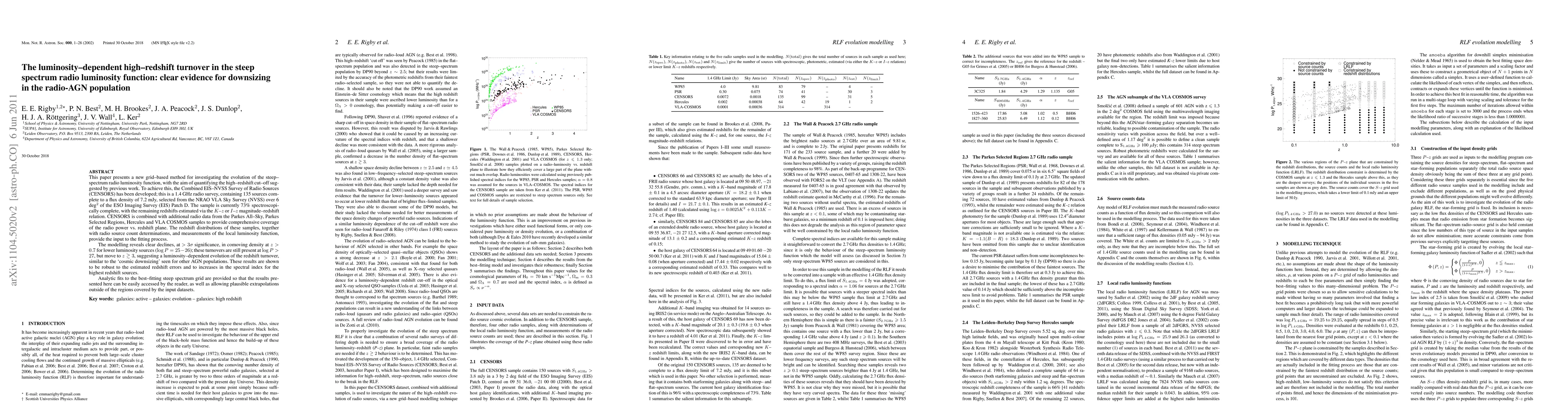 This paper presents a new grid-based method for investigating the evolution of the steep-spectrum radio luminosity function, with the aim of quantifying the high-redshift cut-off suggested by previous work. To achieve this, the Combined EIS-NVSS Survey of Radio Sources (CENSORS) has been developed; this is a 1.4 GHz radio survey, containing 135 sources complete to a flux density of 7.2 mJy, selected from the NRAO VLA Sky Survey (NVSS) over 6 deg^2 of the ESO Imaging Survey (EIS) Patch D. The sample is currently 73% spectroscopically complete, with the remaining redshifts estimated via the K-z or I-z magnitude-redshift relation. CENSORS is combined with additional radio data from the Parkes All-Sky, Parkes Selected Regions, Hercules and VLA COSMOS samples to provide comprehensive coverage of the radio power vs. redshift plane. The redshift distributions of these samples, together with radio source count determinations, and measurements of the local luminosity function, provide the input to the fitting process. The modelling reveals clear declines, at > 3sigma significance, in comoving density at z > 0.7 for lower luminosity sources (log P = 25-26); these turnovers are still present at log P > 27, but move to z > 3, suggesting a luminosity-dependent evolution of the redshift turnover, similar to the `cosmic downsizing' seen for other AGN populations. These results are shown to be robust to the estimated redshift errors and to increases in the spectral index for the highest redshift sources. Analytic fits to the best-fitting steep spectrum grid are provided so that the results presented here can be easily accessed by the reader, as well as allowing plausible extrapolations outside of the regions covered by the input datasets