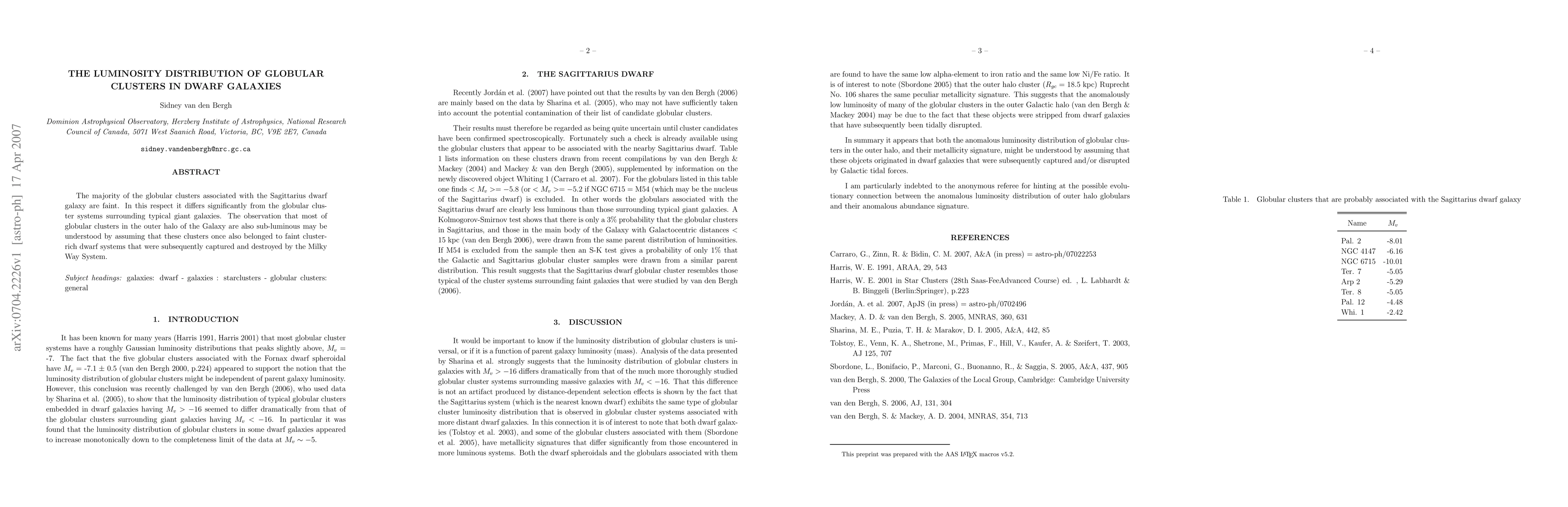 This study finds that globular clusters in the Sagittarius dwarf galaxy are predominantly faint, contrasting sharply with those in typical giant galaxies. The researchers suggest that many sub-luminous clusters in the Milky Way's outer halo may have originated from now-destroyed, cluster-rich dwarf galaxies that were absorbed by the Milky Way.