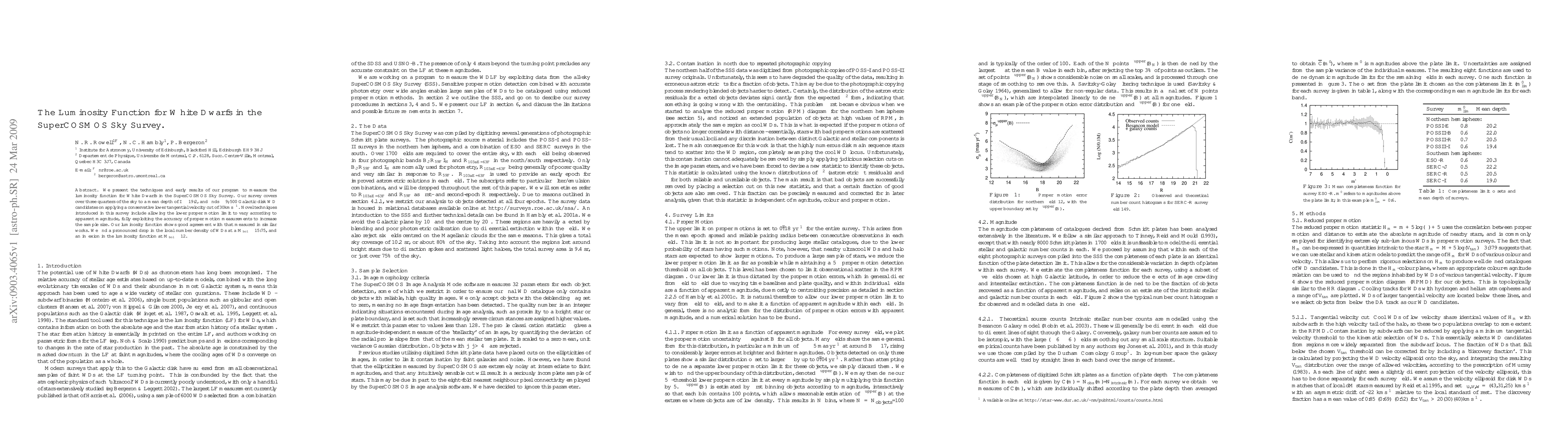 We present the techniques and early results of our program to measure the luminosity function for White Dwarfs in the SuperCOSMOS Sky Survey. Our survey covers over three quarters of the sky to a mean depth of I~19.2, and finds ~9,500 Galactic disk WD candidates on applying a conservative lower tangential velocity cut of 30kms^-1. Novel techniques introduced in this survey include allowing the lower proper motion limit to vary according to apparent magnitude, fully exploiting the accuracy of proper motion measurements to increase the sample size. Our luminosity function shows good agreement with that measured in similar works. We find a pronounced drop in the local number density of WDs at a M_bol~15.75, and an inflexion in the luminosity function at M_bol~12.