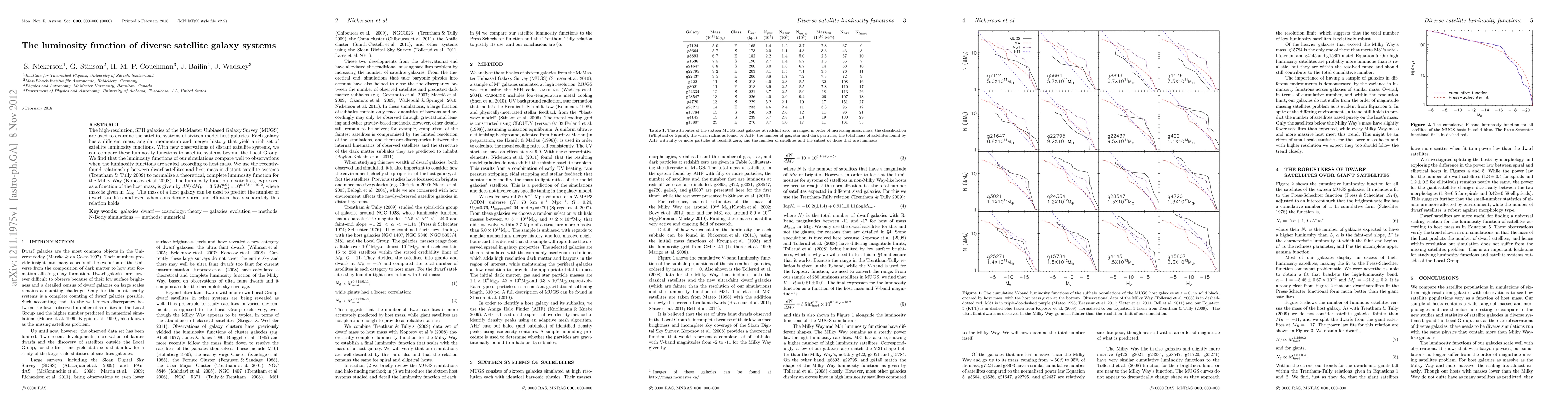 The high-resolution, SPH galaxies of the McMaster Unbiased Galaxy Survey (MUGS) are used to examine the satellite systems of sixteen model host galaxies. Each galaxy has a different mass, angular momentum and merger history that yield a rich set of satellite luminosity functions. With new observations of distant satellite systems, we can compare these luminosity functions to satellite systems beyond the Local Group. We find that the luminosity functions of our simulations compare well to observations when the luminosity functions are scaled according to host mass. We use the recently-found relationship between dwarf satellites and host mass in distant satellite systems (Trentham & Tully 2009) to normalize a theoretical, complete luminosity function for the Milky Way (Koposov et al. 2008). The luminosity function of satellites, expressed as a function of the host mass, is given by dN/dM_V= 3.5 x M_host^(0.91) x 10^(0.1 x M_V-10.2), where host mass is given in M_sun. The mass of a host galaxy can be used to predict the number of dwarf satellites and even when considering spiral and elliptical hosts separately this relation holds.