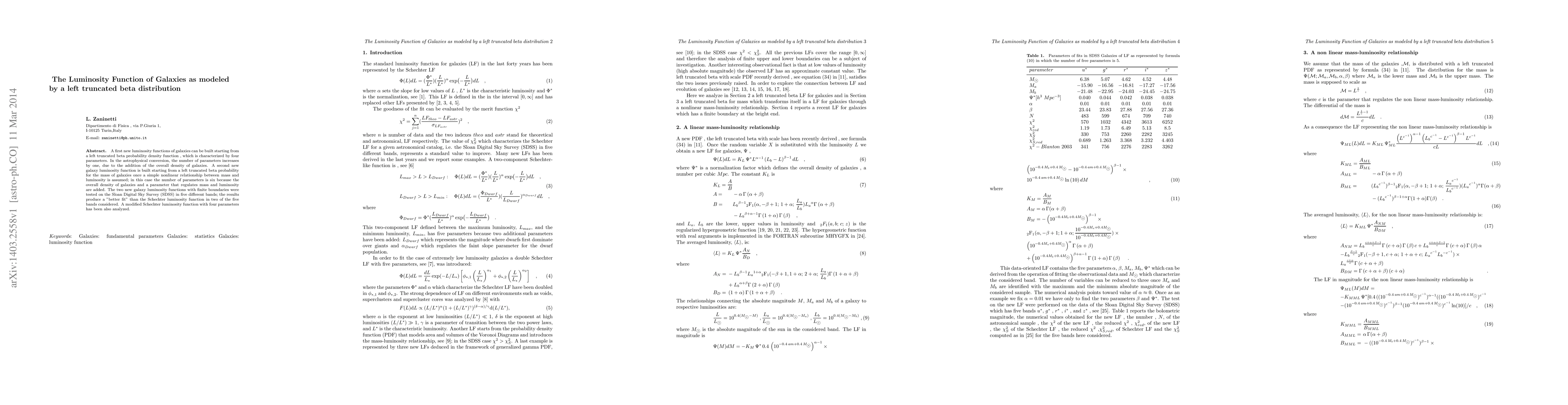 A first new luminosity functions of galaxies can be built starting from a left truncated beta probability density function, which is characterized by four parameters. In the astrophysical conversion, the number of parameters increases by one, due to the addition of the overall density of galaxies. A second new galaxy luminosity function is built starting from a left truncated beta probability for the mass of galaxies once a simple nonlinear relationship between mass and luminosity is assumed; in this case the number of parameters is six because the overall density of galaxies and a parameter that regulates mass and luminosity are added. The two new galaxy luminosity functions with finite boundaries were tested on the Sloan Digital Sky Survey (SDSS) in five different bands; the results produce a "better fit" than the Schechter luminosity function in two of the five bands considered. A modified Schechter luminosity function with four parameters has been also analyzed.