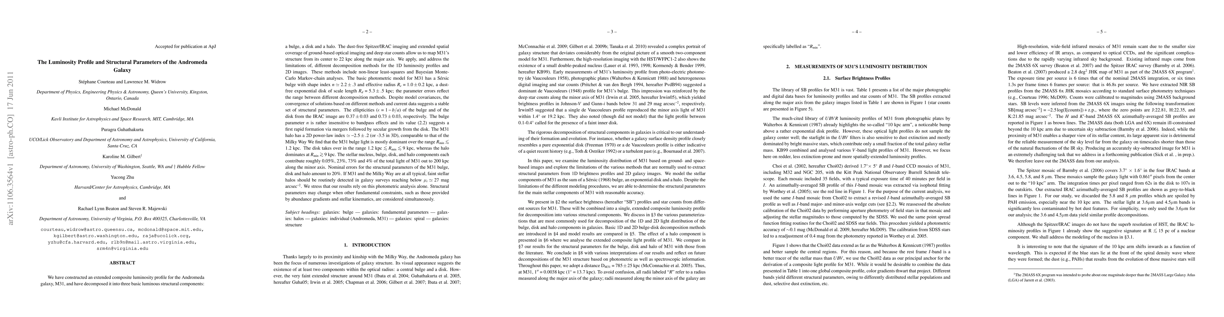 Researchers mapped the structure of Andromeda Galaxy M31 using Spitzer/IRAC imaging and optical observations, finding three distinct luminous components: a bulge, disk, and halo, with the bulge being dominant at its center.