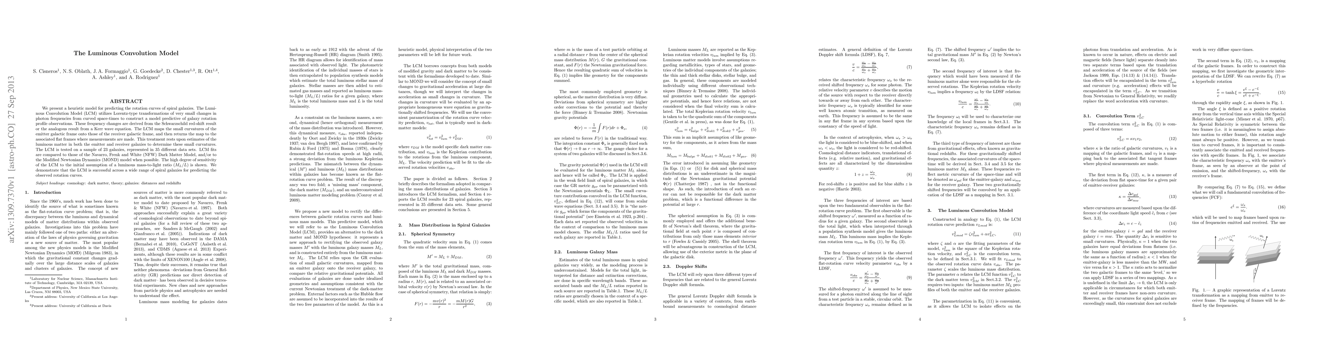 The Luminous Convolution Model (LCM) uses Lorentz-type transformations of photon frequency changes from curved space-times to predict galaxy rotation profiles, mapping small curvatures of emitter and receiver galactic frames onto flat frames for measurement, sensitive to initial luminous mass-to-light ratio assumptions.