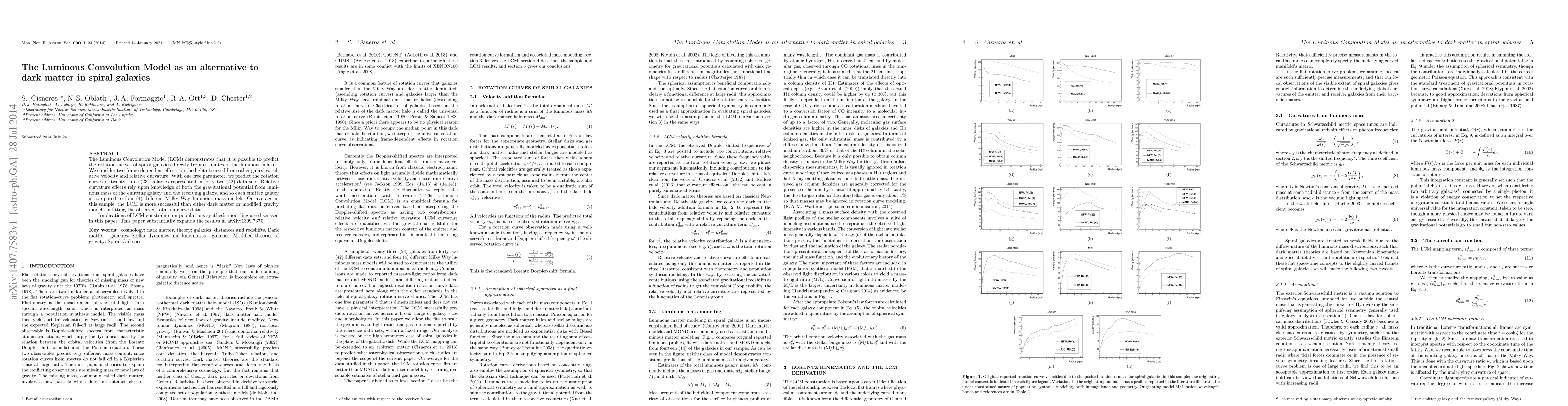 The Luminous Convolution Model (LCM) predicts rotation curves of spiral galaxies directly from luminous matter estimates, considering frame-dependent effects like relative velocity and curvature, with one free parameter. It compares emitter galaxies to four Milky Way luminous mass models.