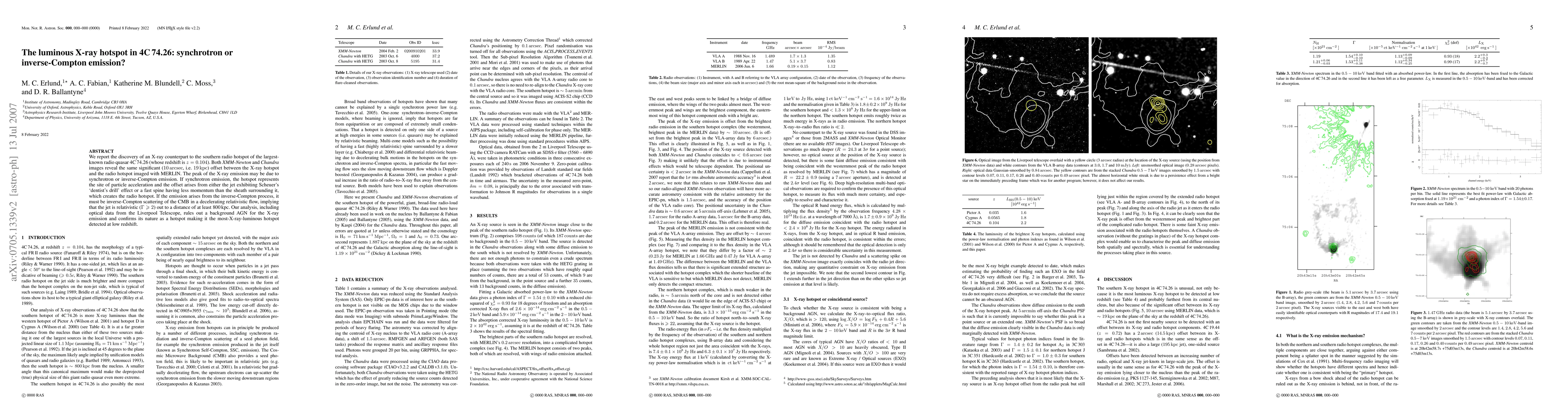 Astronomers discovered an X-ray hotspot in a distant radio quasar, with possible causes being either synchrotron or inverse-Compton emission, which could indicate the presence of a relativistic jet.