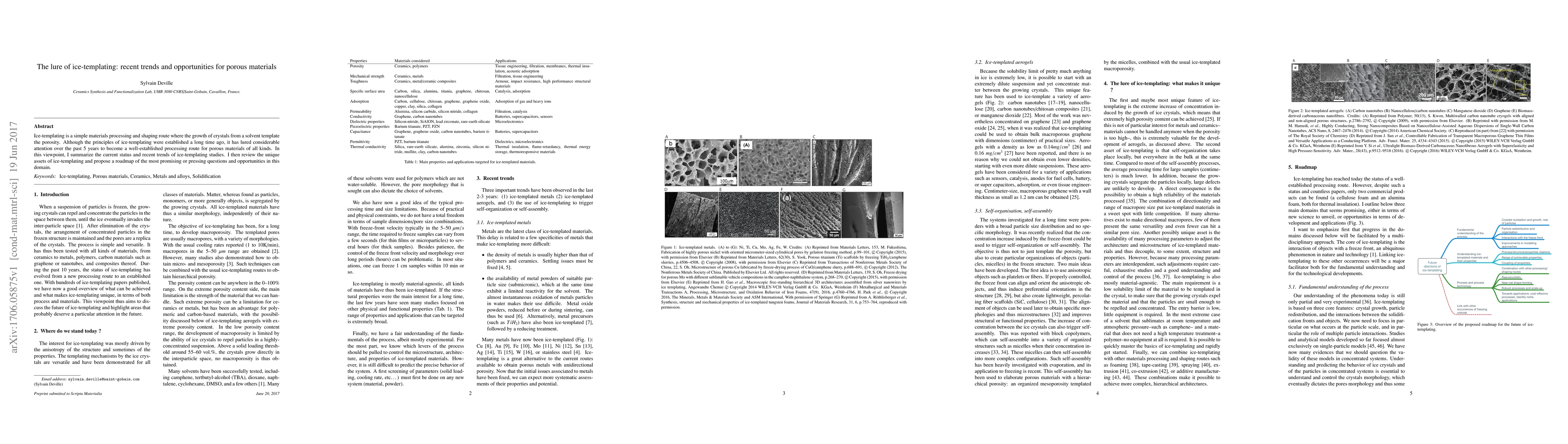 This paper reviews recent trends in ice-templating, a method for creating porous materials by crystal growth from a solvent, highlighting its growing popularity and potential. It proposes a roadmap for future research opportunities and questions in this field.