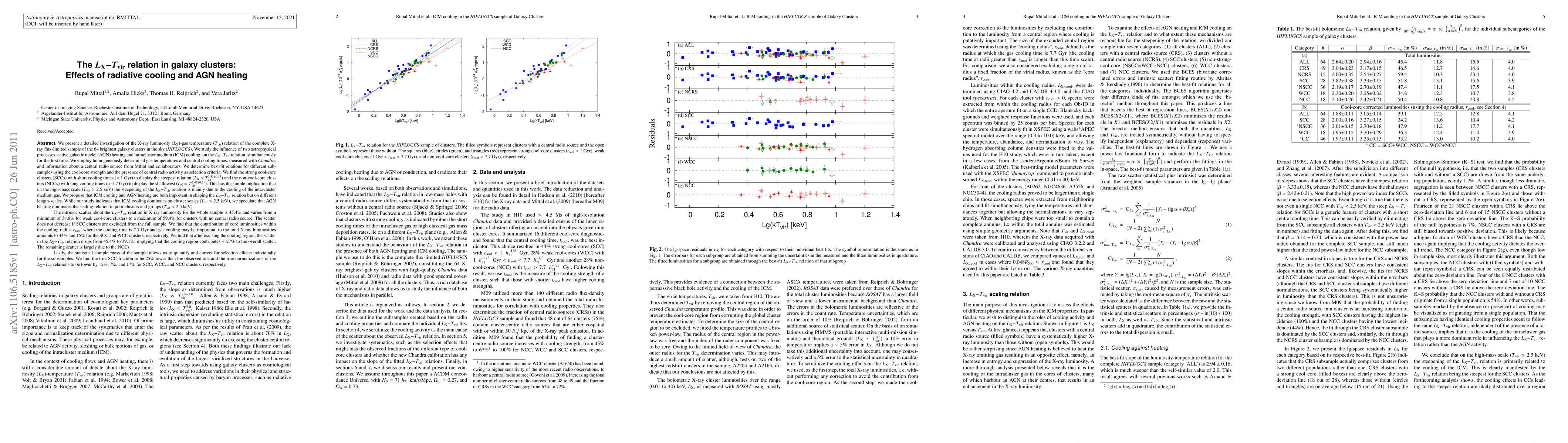 This paper investigates the Lx-Tvir relation in galaxy clusters, examining the effects of radiative cooling and AGN heating. It finds that cool-core clusters with short cooling times show a steeper Lx-Tvir relation compared to non-cool-core clusters, suggesting that ICM cooling dominates on high-mass scales, while AGN heating may shape the relation in smaller clusters.