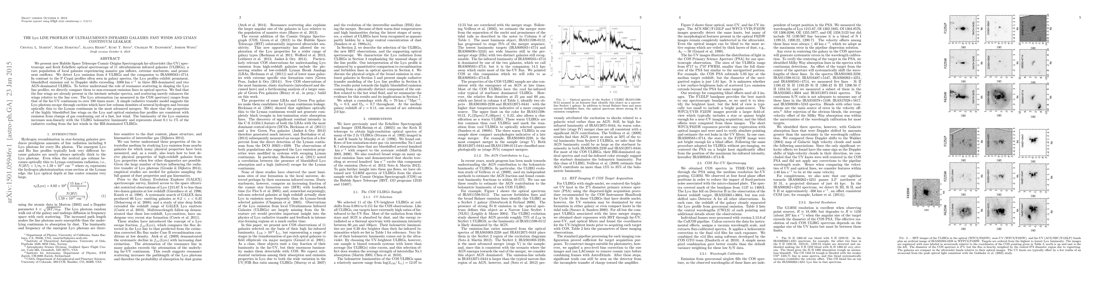 This study uses Hubble and Keck spectroscopy to analyze the H Lyman alpha line profiles in 11 ultraluminous infrared galaxies (ULIRGs), revealing prominent blueshifted emission indicative of fast winds and Lyman continuum leakage. The findings suggest that the blueshifted line wings originate from gas condensing out of these winds, with the H Lyman alpha emission representing a small fraction of the cooling from the hot winds.