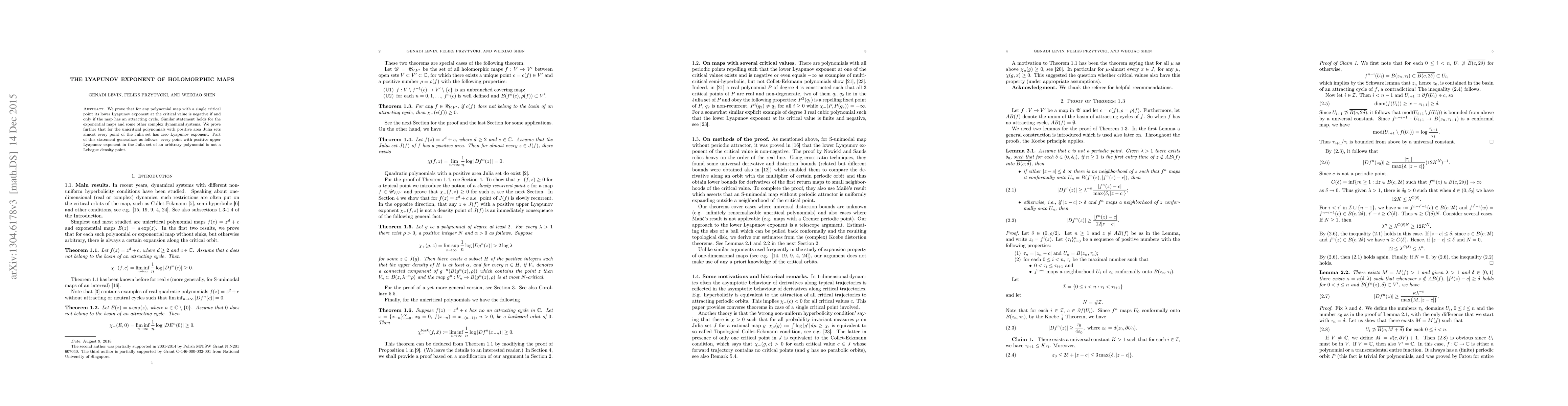 This paper proves that for holomorphic maps with a single critical point, the lower Lyapunov exponent at the critical value is negative if and only if the map has an attracting cycle. It also shows that for unicritical polynomials with positive area Julia sets, almost every point in the Julia set has a zero Lyapunov exponent.