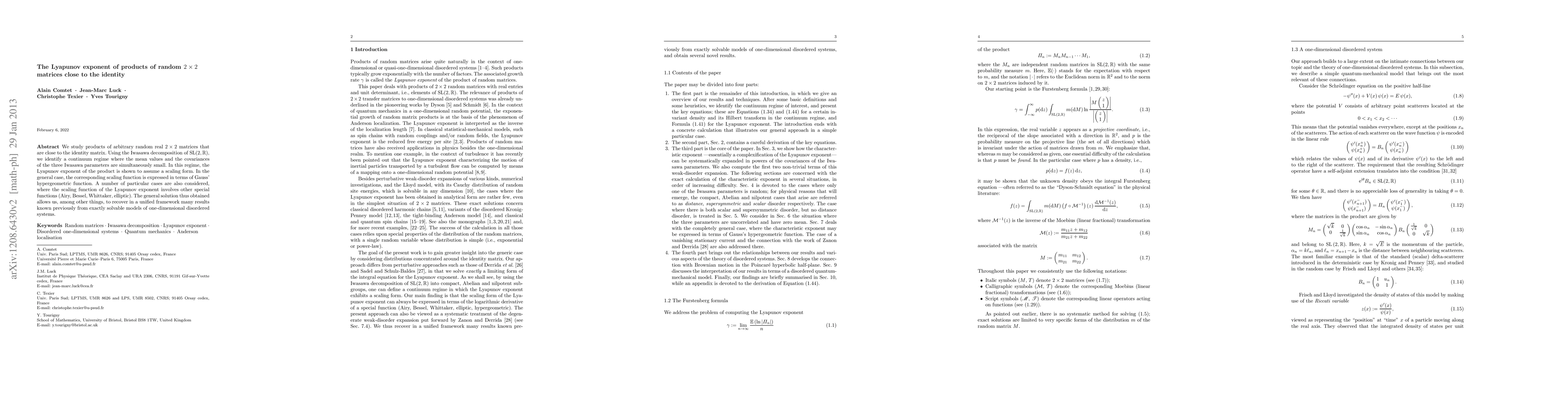 Researchers studied products of random 2x2 matrices close to the identity matrix, finding that in a specific regime, the Lyapunov exponent scales with parameters, while other cases involve special functions like Gauss' hypergeometric function.
