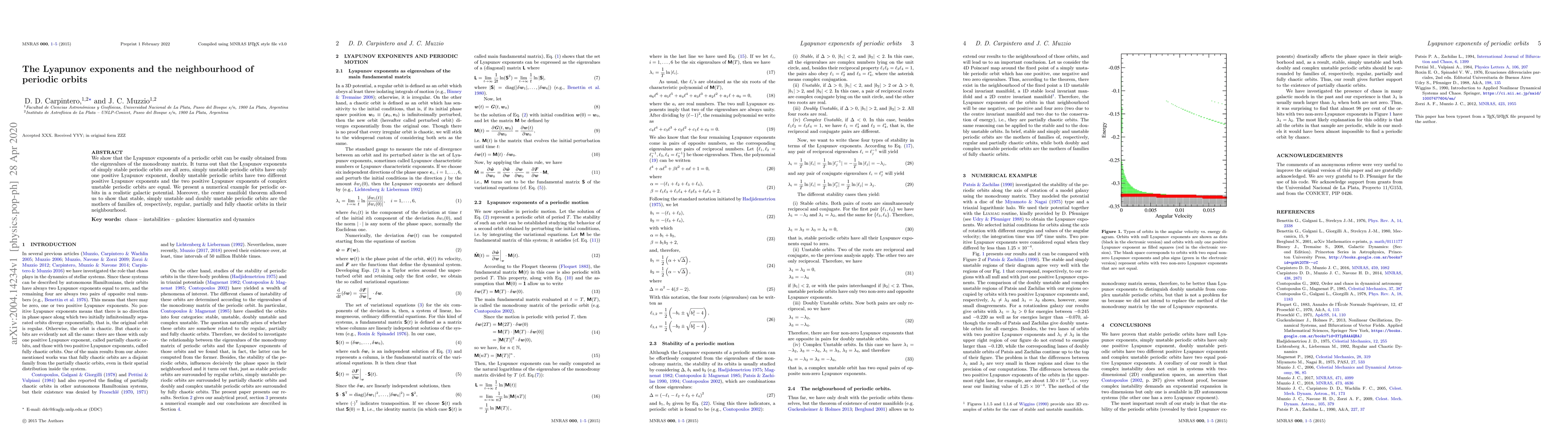 Summary: The paper demonstrates that Lyapunov exponents of periodic orbits can be derived from the monodromy matrix's eigenvalues, revealing distinct patterns for stable, unstable, and complex orbits. It also illustrates how stable periodic orbits lead to regular chaos, while unstable ones result in varying levels of chaos in their neighborhoods.