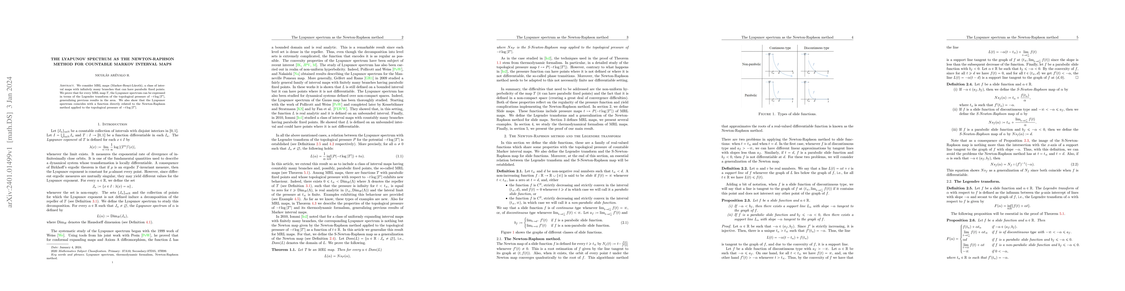 We consider MRL maps (Markov-Renyi-L\"uroth), a class of interval maps with infinitely many branches that can have parabolic fixed points. We prove that for every MRL map $T$, the Lyapunov spectrum can be expressed in terms of the Legendre transform of the topological pressure of $-t\log|T'|$, generalizing previous results in the area. We also show that the Lyapunov spectrum coincides with a function directly related to the Newton-Raphson method applied to the topological pressure of $-t\log|T'|$.