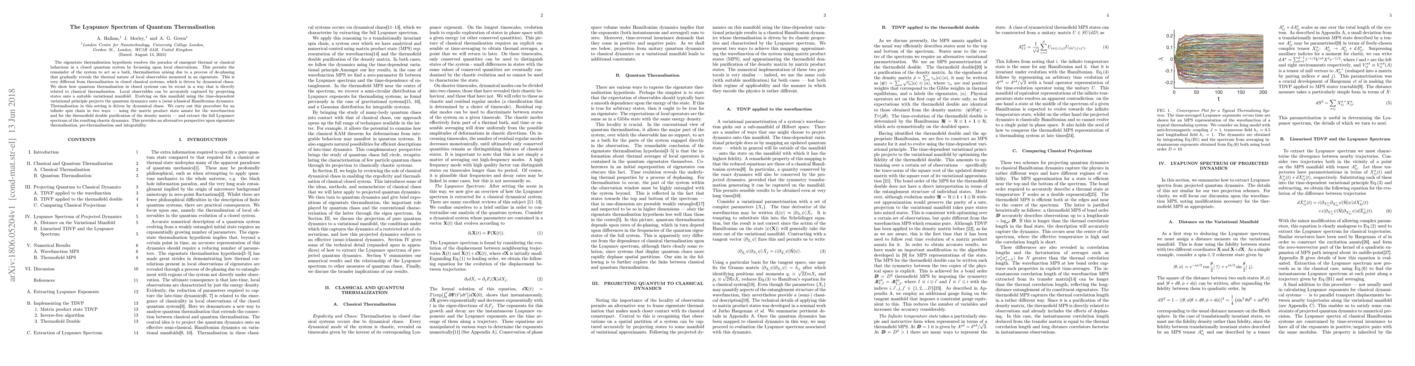 This paper explores quantum thermalisation in closed systems through the lens of Lyapunov spectrum, demonstrating that it can be recast to resemble classical thermalisation driven by dynamical chaos. It uses variational methods to project quantum dynamics onto classical Hamiltonian dynamics, revealing the chaotic nature of thermalisation in infinite spin chains.