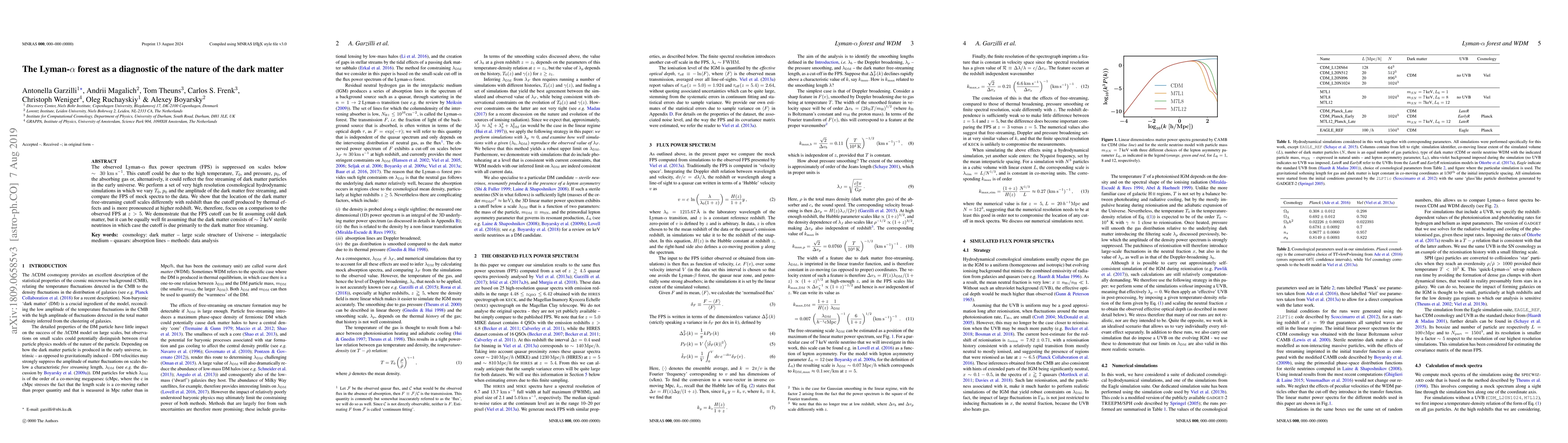 This paper investigates the Lyman-$\alpha$ forest's flux power spectrum to determine the nature of dark matter. It finds that the observed FPS cutoff can be attributed to either thermal effects or dark matter free streaming, with the latter being more pronounced at higher redshifts.