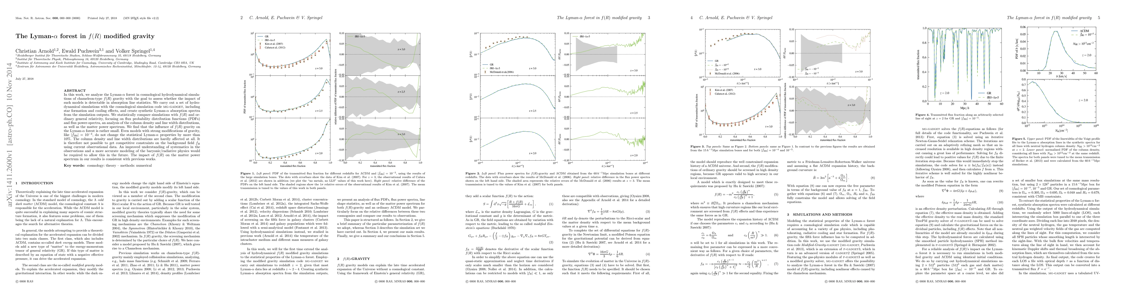 This paper investigates the Lyman-$\alpha$ forest in simulations of chameleon-type f(R) gravity, finding minimal detectable impact on absorption line statistics. The study concludes that current observational data cannot constrain f(R) modifications, necessitating better observational techniques and modeling.