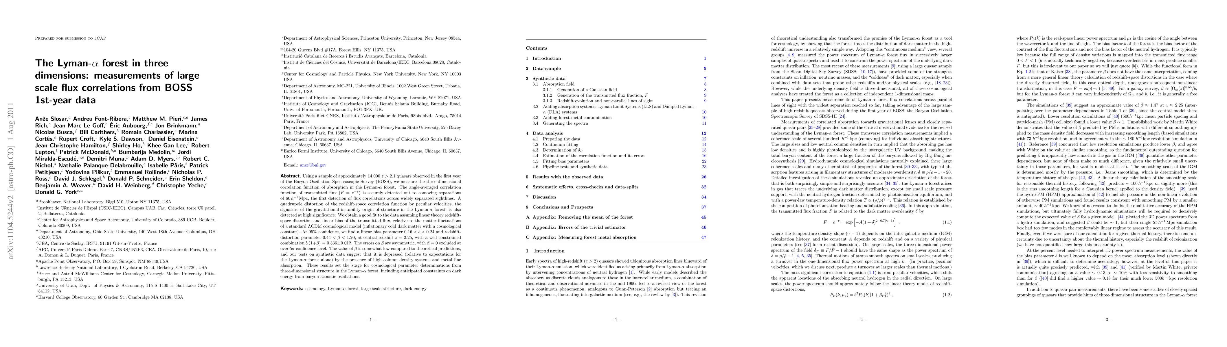 This paper uses BOSS 1st-year data to measure the three-dimensional correlation function of the Lyman-alpha forest, detecting flux correlations across large separations and confirming the gravitational origin of structure. The study finds a linear bias parameter and a redshift-distortion parameter, noting discrepancies with theoretical predictions likely due to high column density systems and metal line absorption.