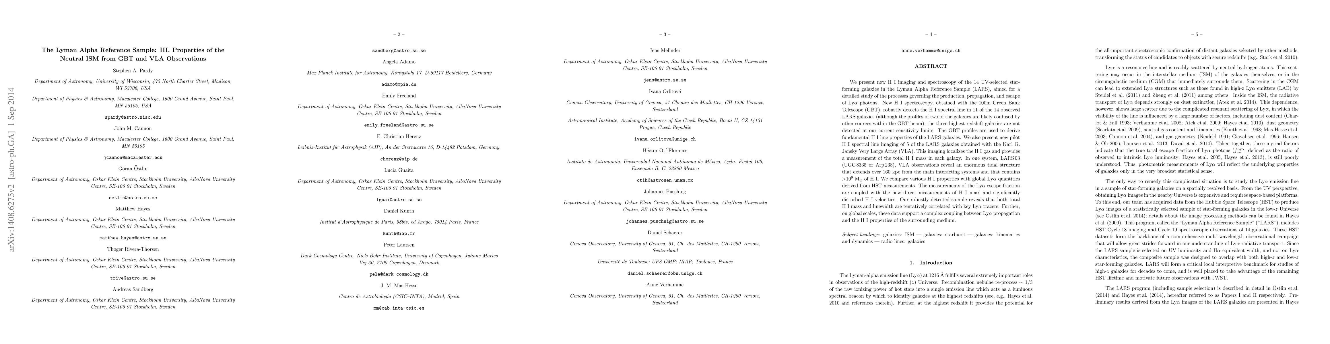 We present new H I imaging and spectroscopy of the 14 UV-selected star-forming galaxies in the Lyman Alpha Reference Sample (LARS), aimed for a detailed study of the processes governing the production, propagation, and escape of Ly$\alpha$ photons. New H I spectroscopy, obtained with the 100m Green Bank Telescope (GBT), robustly detects the H I spectral line in 11 of the 14 observed LARS galaxies (although the profiles of two of the galaxies are likely confused by other sources within the GBT beam); the three highest redshift galaxies are not detected at our current sensitivity limits. The GBT profiles are used to derive fundamental H I line properties of the LARS galaxies. We also present new pilot H I spectral line imaging of 5 of the LARS galaxies obtained with the Karl G. Jansky Very Large Array (VLA). This imaging localizes the H I gas and provides a measurement of the total H I mass in each galaxy. In one system, LARS 03 (UGC 8335 or Arp 238), VLA observations reveal an enormous tidal structure that extends over 160 kpc from the main interacting systems and that contains $>$10$^9$ M$_{\odot}$ of H I. We compare various H I properties with global Ly$\alpha$ quantities derived from HST measurements. The measurements of the Ly$\alpha$ escape fraction are coupled with the new direct measurements of H I mass and significantly disturbed H I velocities. Our robustly detected sample reveals that both total H I mass and linewidth are tentatively correlated with key Ly$\alpha$ tracers. Further, on global scales, these data support a complex coupling between Ly$\alpha$ propagation and the H I properties of the surrounding medium.