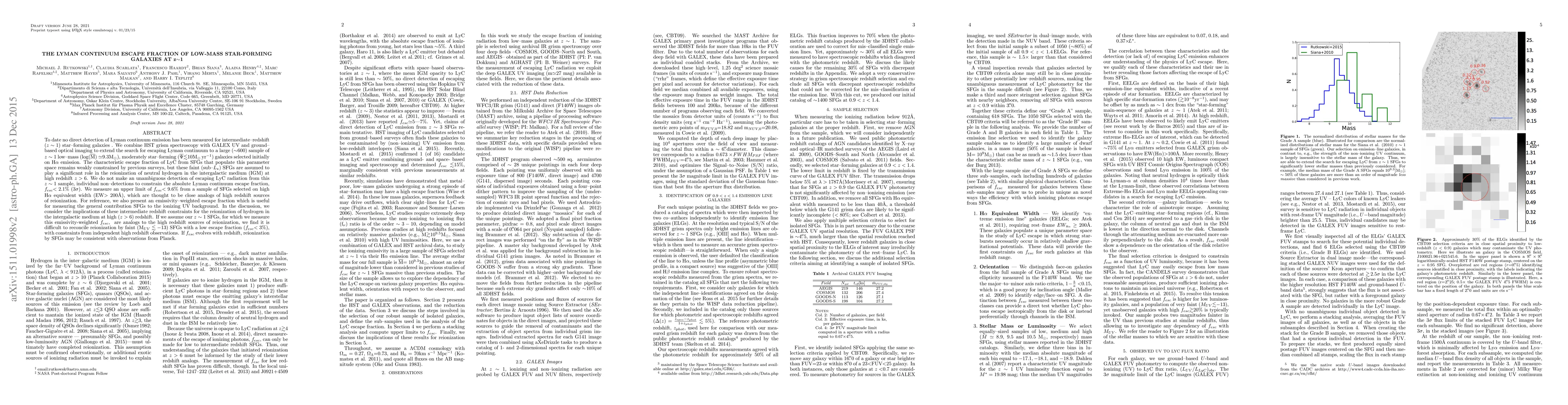 This study investigates the Lyman continuum escape fraction from low-mass, star-forming galaxies at z~1 using HST grism spectroscopy and other imaging techniques. Despite not detecting escaping LyC radiation, the research sets an upper limit of $f_{esc}$<2.1% (3$\sigma$) and discusses implications for high-redshift reionization, suggesting a low escape fraction may conflict with high-redshift observations unless $f_{esc}$ evolves with redshift.