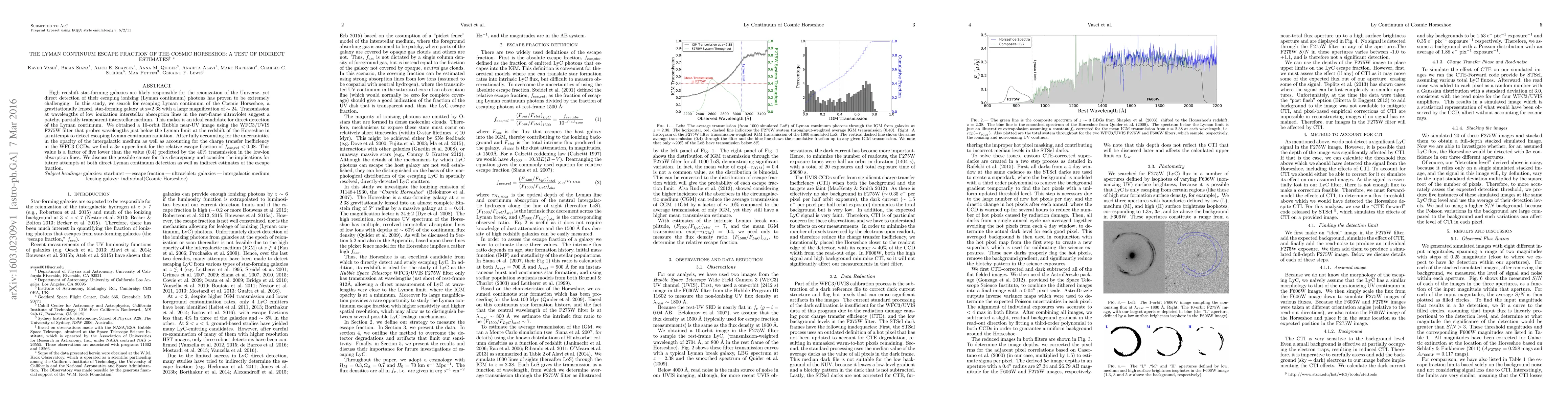 This study investigates the Lyman continuum escape fraction of the Cosmic Horseshoe, a gravitationally lensed star-forming galaxy at z=2.38, finding a $3 \sigma$ upper limit of $f_{esc,rel}<0.08$. This result is significantly lower than the 0.4 predicted by indirect estimates, raising questions about the reliability of such methods.