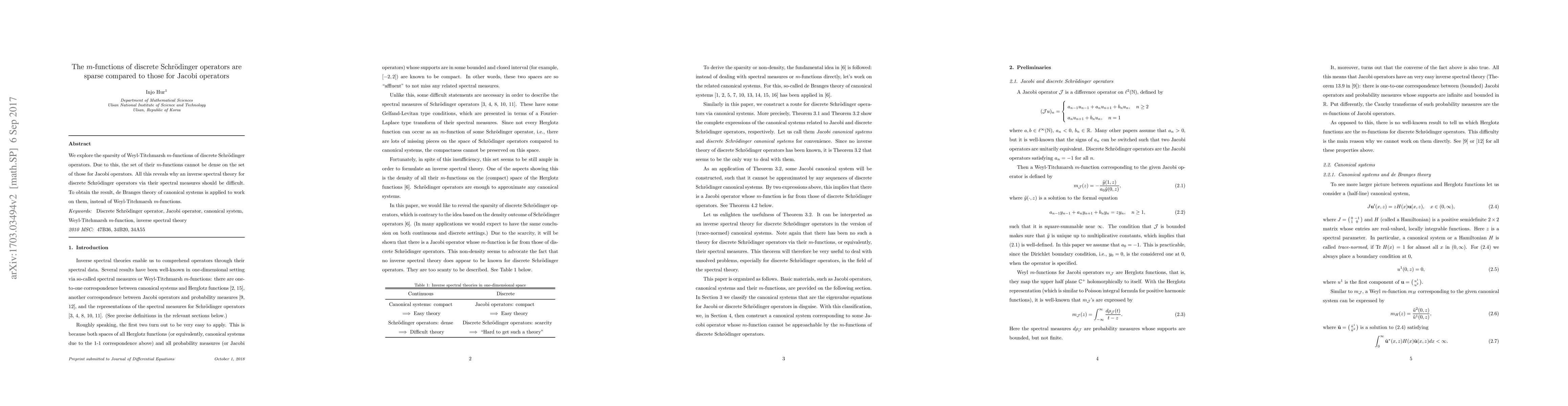 This paper explores the sparsity of Weyl-Titchmarsh $m$-functions for discrete Schrödinger operators, demonstrating that they are sparse compared to those for Jacobi operators, which complicates the development of an inverse spectral theory. The result is achieved using de Branges theory of canonical systems.