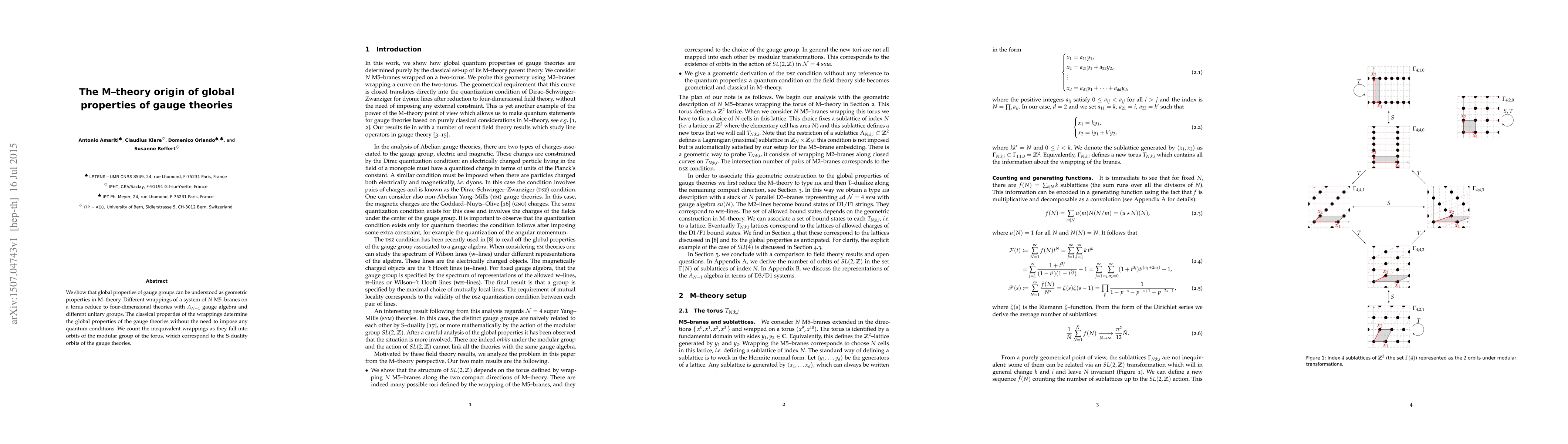 Researchers show that gauge theories' global properties can be understood as geometric properties in M-theory, with different wrappings of N M5-branes reducing to four-dimensional theories with specific gauge algebras and unitary groups.