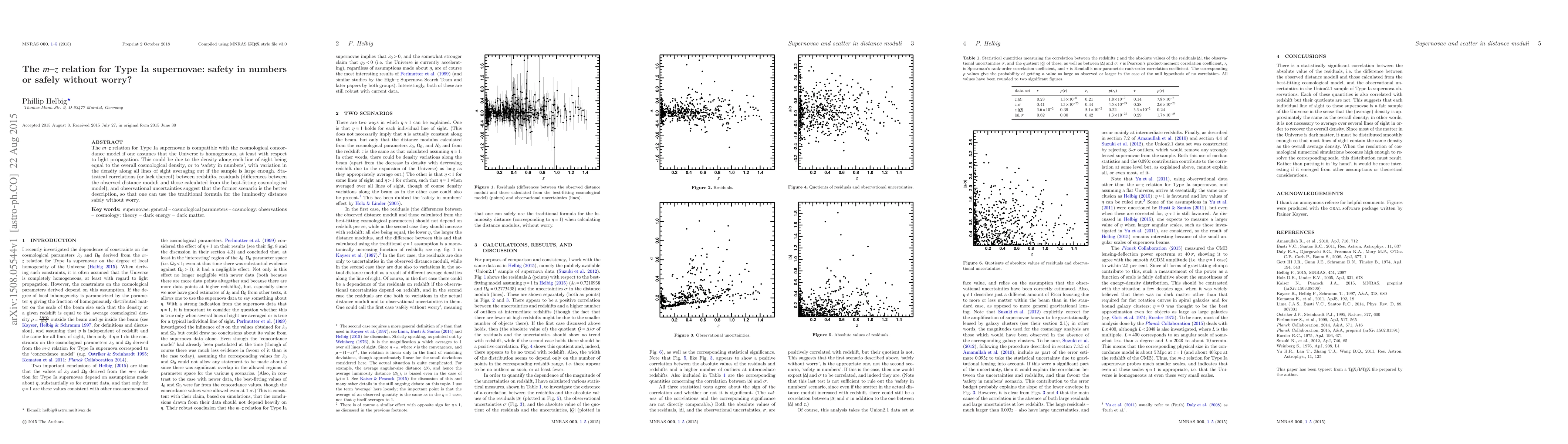 The $m$-$z$ relation for Type Ia supernovae is compatible with the cosmological concordance model if one assumes that the Universe is homogeneous, at least with respect to light propagation. This could be due to the density along each line of sight being equal to the overall cosmological density, or to `safety in numbers', with variation in the density along all lines of sight averaging out if the sample is large enough. Statistical correlations (or lack thereof) between redshifts, residuals (differences between the observed distance moduli and those calculated from the best-fitting cosmological model), and observational uncertainties suggest that the former scenario is the better description, so that one can use the traditional formula for the luminosity distance safely without worry.
