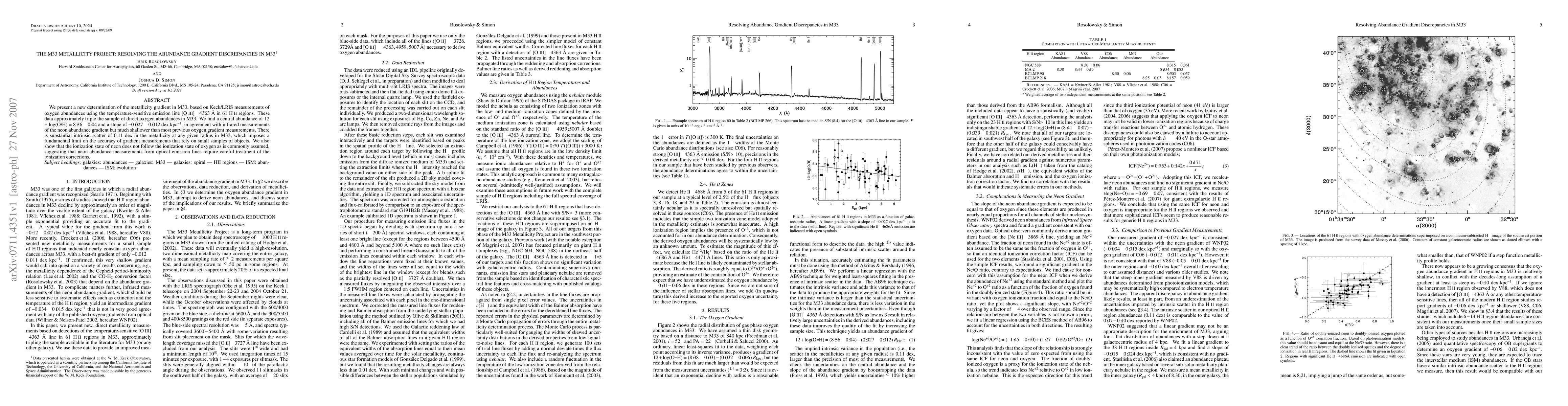 This study determines the metallicity gradient in M33 using Keck/LRIS measurements, finding a shallower gradient than previous oxygen gradient measurements and highlighting the need for careful treatment of ionization corrections for neon abundances. The intrinsic scatter in metallicity suggests limitations in gradient measurements based on small samples.