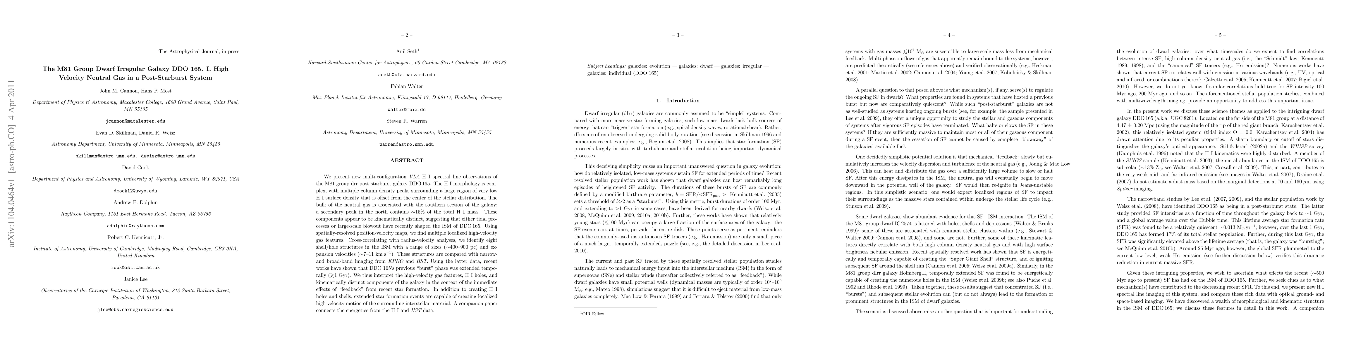 We present new multi-configuration VLA HI spectral line observations of the M81 group dIrr post-starburst galaxy DDO 165. The HI morphology is complex, with multiple column density peaks surrounding a large region of very low HI surface density that is offset from the center of the stellar distribution. The bulk of the neutral gas is associated with the southern section of the galaxy; a secondary peak in the north contains ~15% of the total HI mass. These components appear to be kinematically distinct, suggesting that either tidal processes or large-scale blowout have recently shaped the ISM of DDO 165. Using spatially-resolved position-velocity maps, we find multiple localized high-velocity gas features. Cross-correlating with radius-velocity analyses, we identify eight shell/hole structures in the ISM with a range of sizes (~400-900 pc) and expansion velocities (~7-11 km/s). These structures are compared with narrow- and broad-band imaging from KPNO and HST. Using the latter data, recent works have shown that DDO 165's previous "burst" phase was extended temporally (>1 Gyr). We thus interpret the high-velocity gas features, HI holes, and kinematically distinct components of the galaxy in the context of the immediate effects of "feedback" from recent star formation. In addition to creating HI holes and shells, extended star formation events are capable of creating localized high velocity motion of the surrounding interstellar material. A companion paper connects the energetics from the HI and HST data.